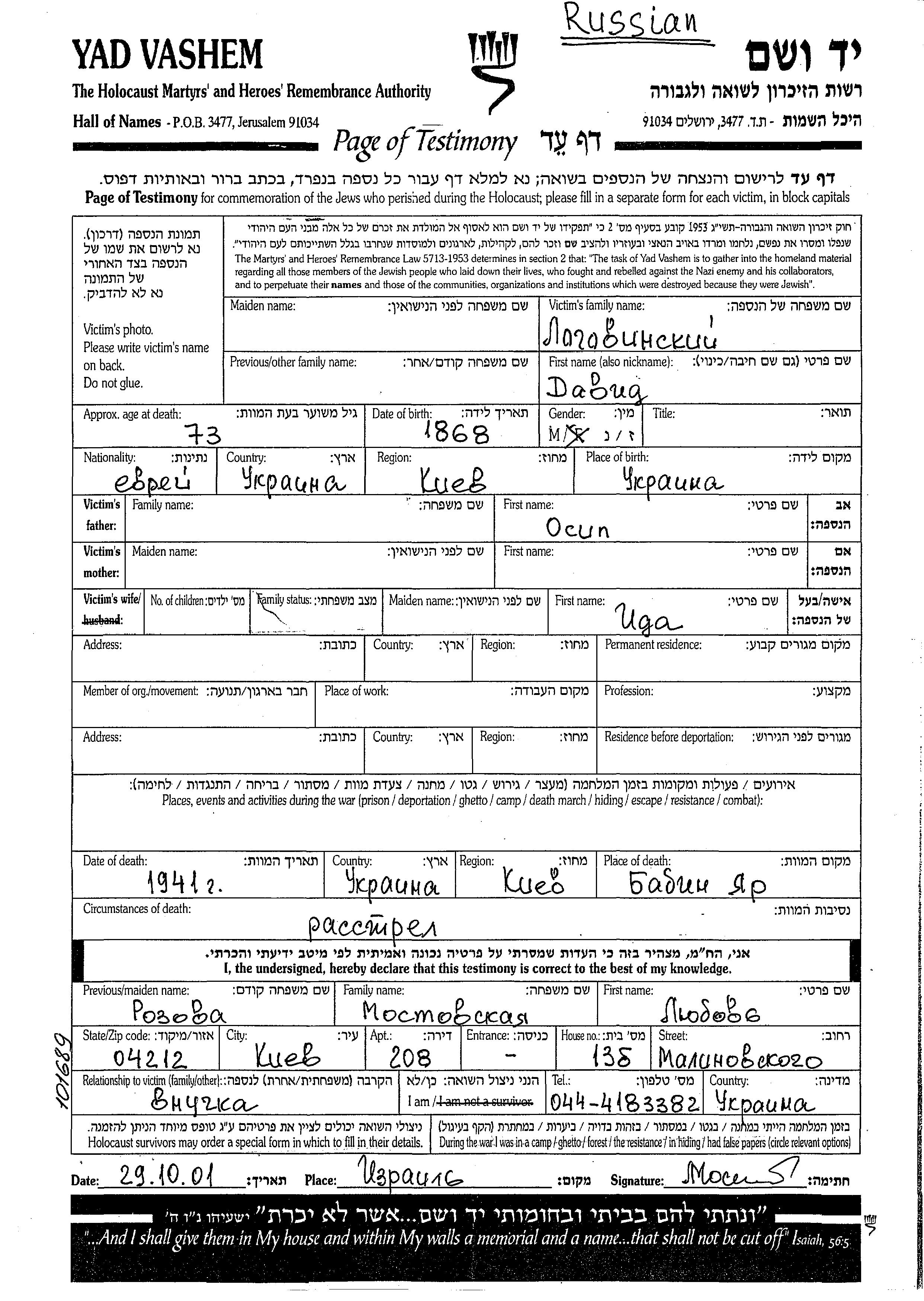 David wurde in der Schoah ermordet. Todesort: Babi Yar, Ukraine (UdSSR) im Jahr 1941.