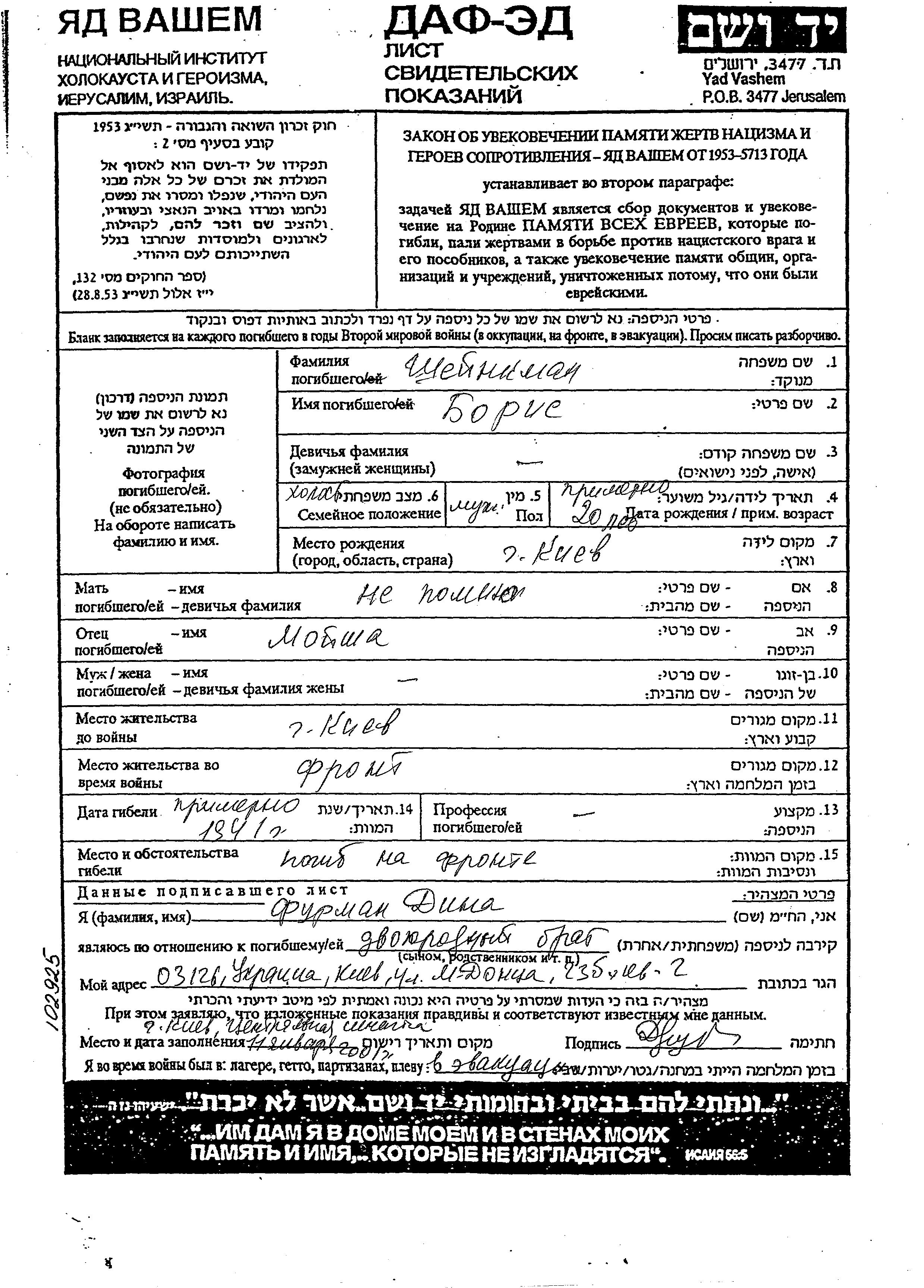 Boris im Militärdienst umgekommen. Todesort: unbekannt im Jahr 1941.