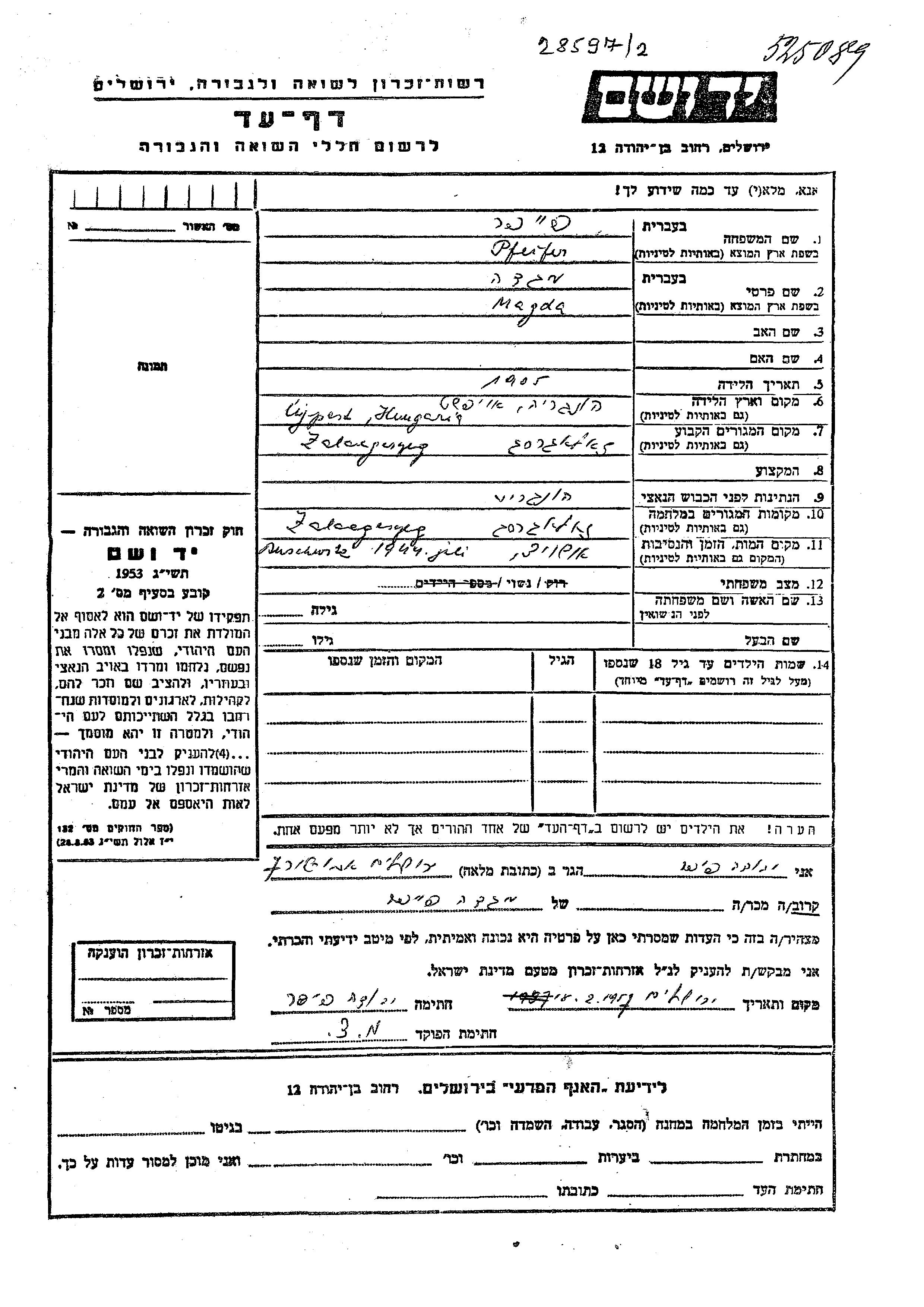 Magda wurde in der Schoah ermordet. Todesort: Auschwitz, Polen im Jahr 1944.
