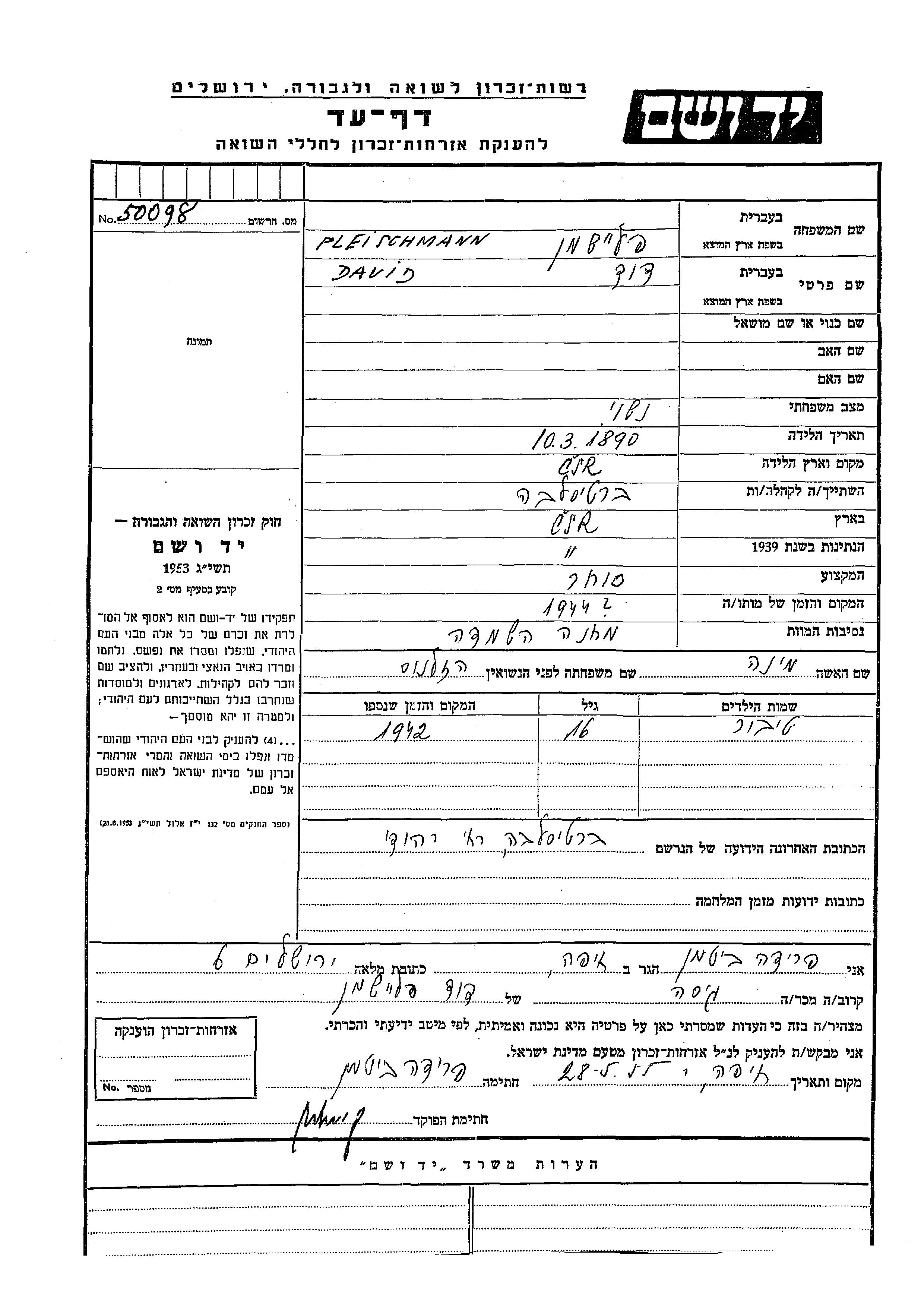 David wurde in der Schoah ermordet. Todesort: unbekannt im Jahr 1944.