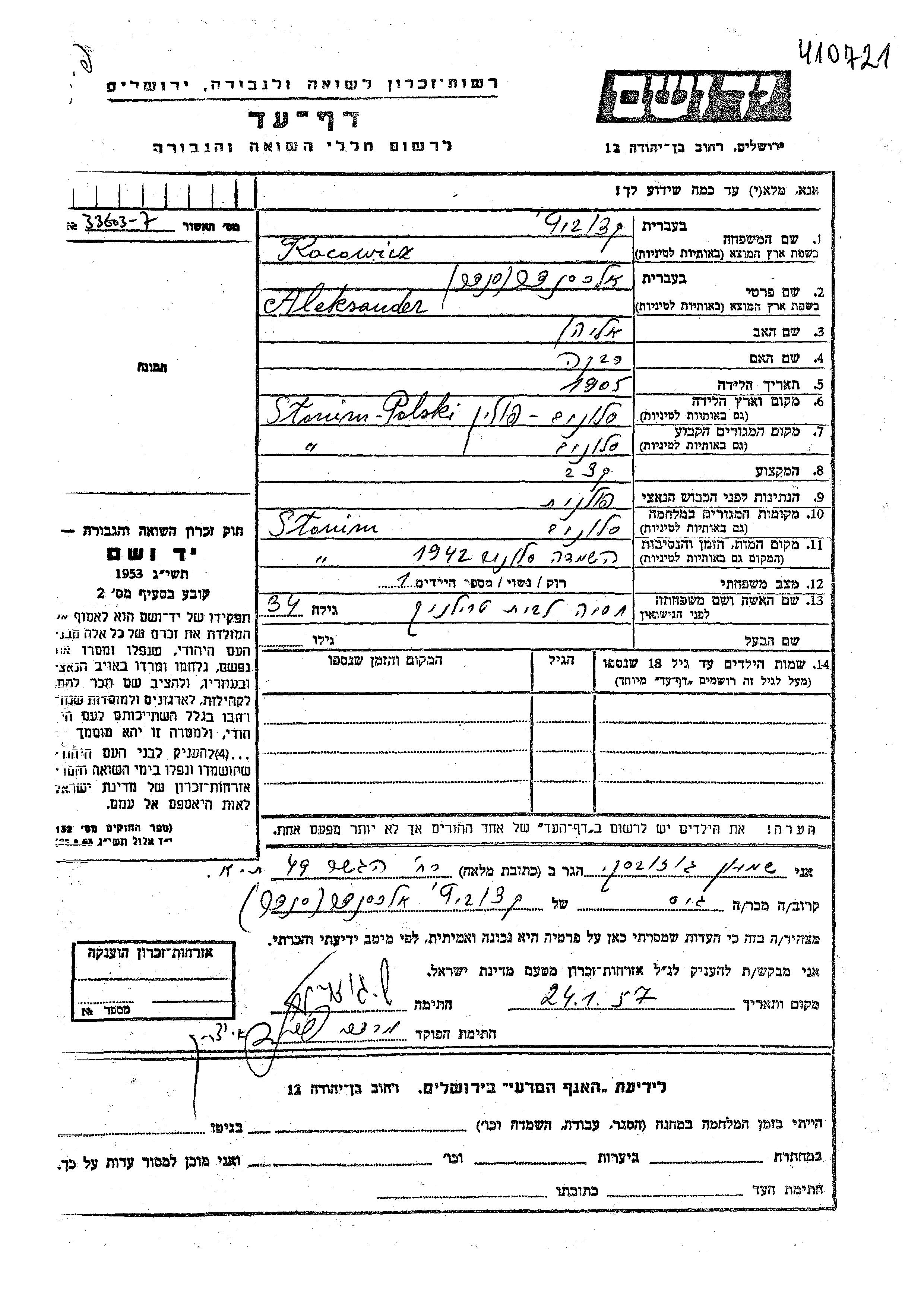 Aleksander wurde in der Schoah ermordet. Todesort: Slonim, Polen im Jahr 1942.