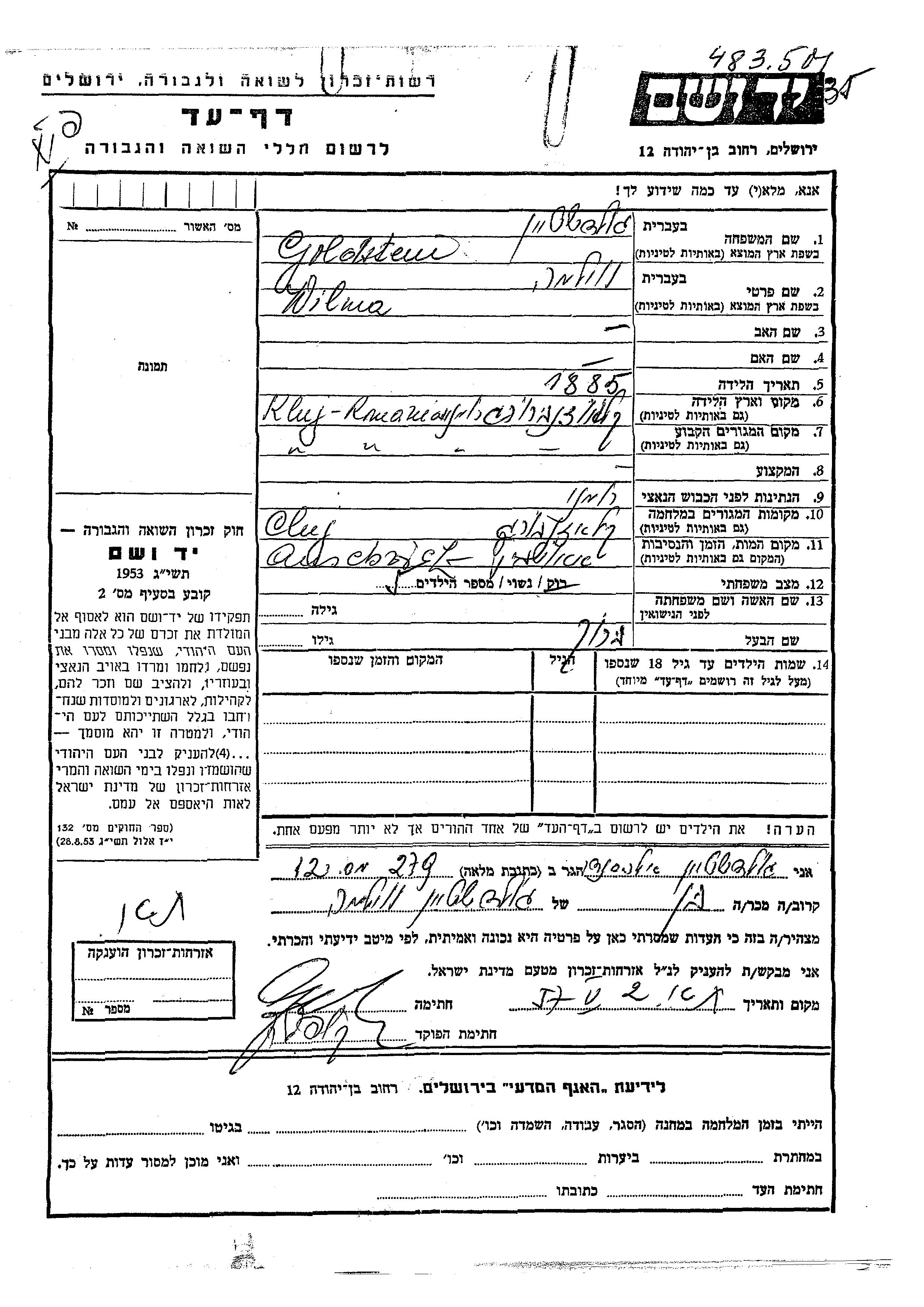 Wilma Goldstein wurde im Jahr 1885 in Cluj, Rumänien geboren. Sie war mit Barukh Verheiratet. Vor dem Zweiten Weltkrieg lebte sie in Cluj, Rumänien. Während des Krieges war sie in Cluj, Rumänien.