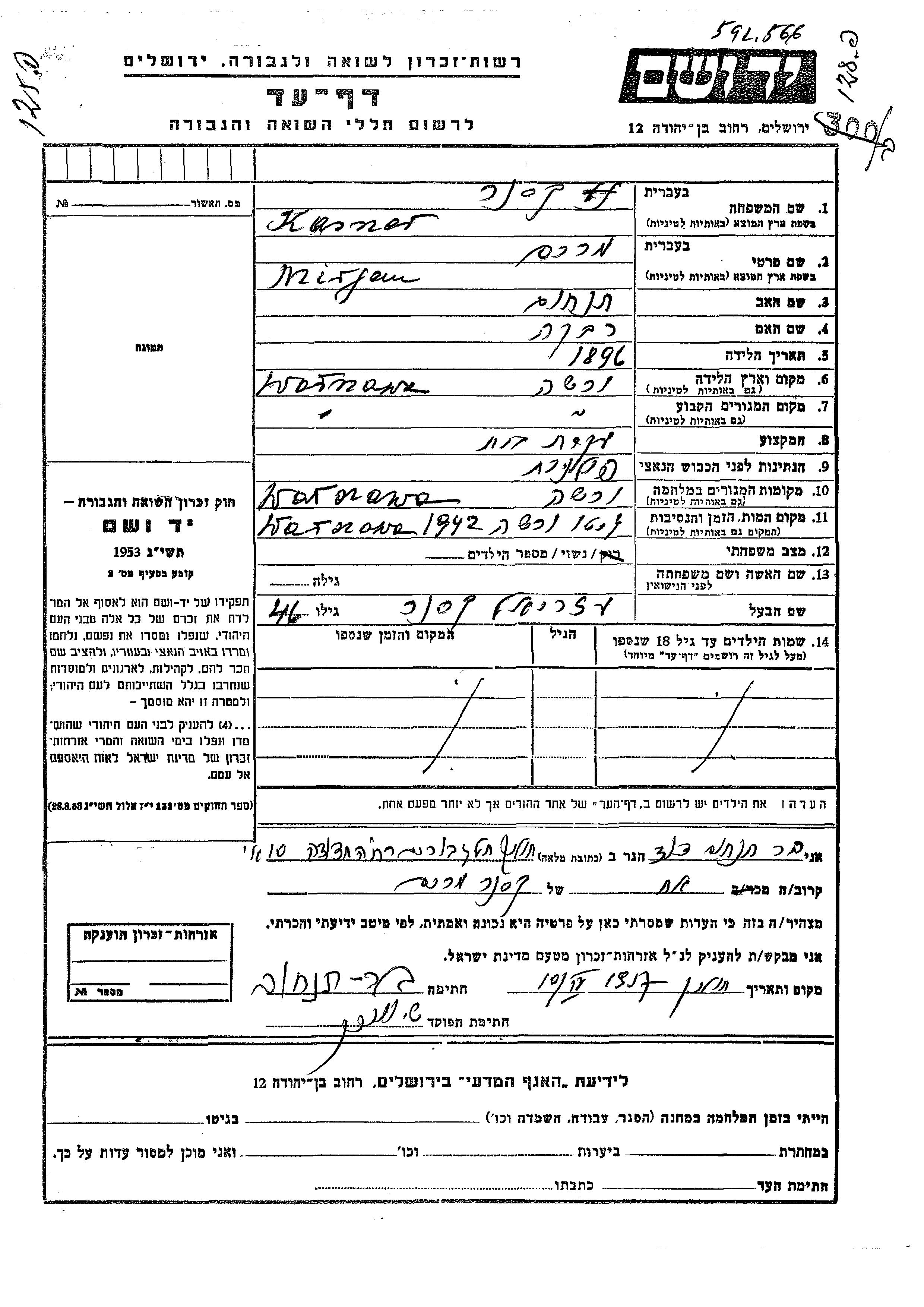 Mirjam Kasner wurde im Jahr 1896 in Warschau, Polen geboren. Sie war die Tochter von Tankhum und Rivka. Sie war Hausfrau und mit Azriel Verheiratet. Vor dem Zweiten Weltkrieg lebte sie in Warsaw, Polen. Während des Krieges war sie in Warschau, Polen.