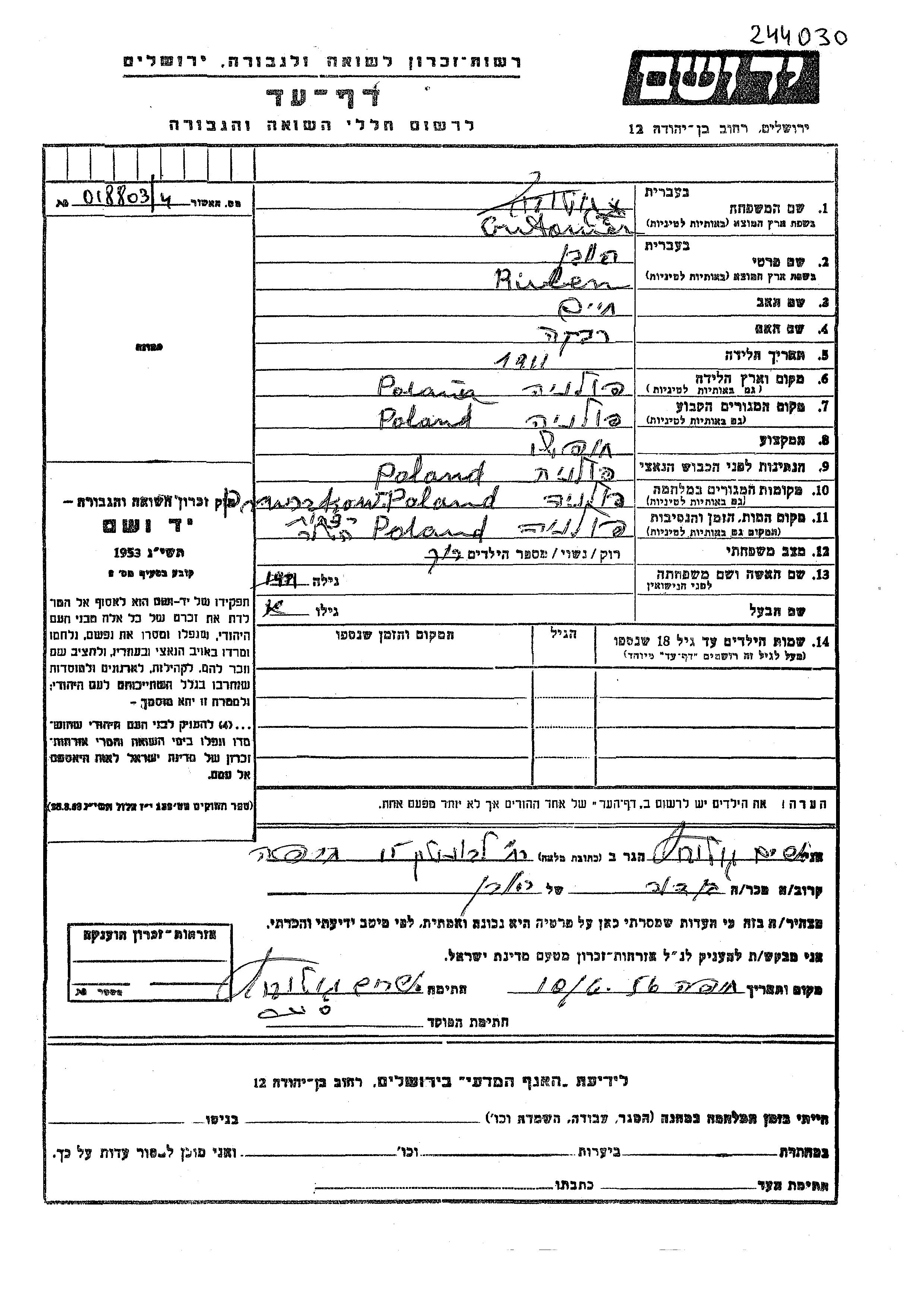 Reuven wurde in der Schoah ermordet. Todesort: Polen.