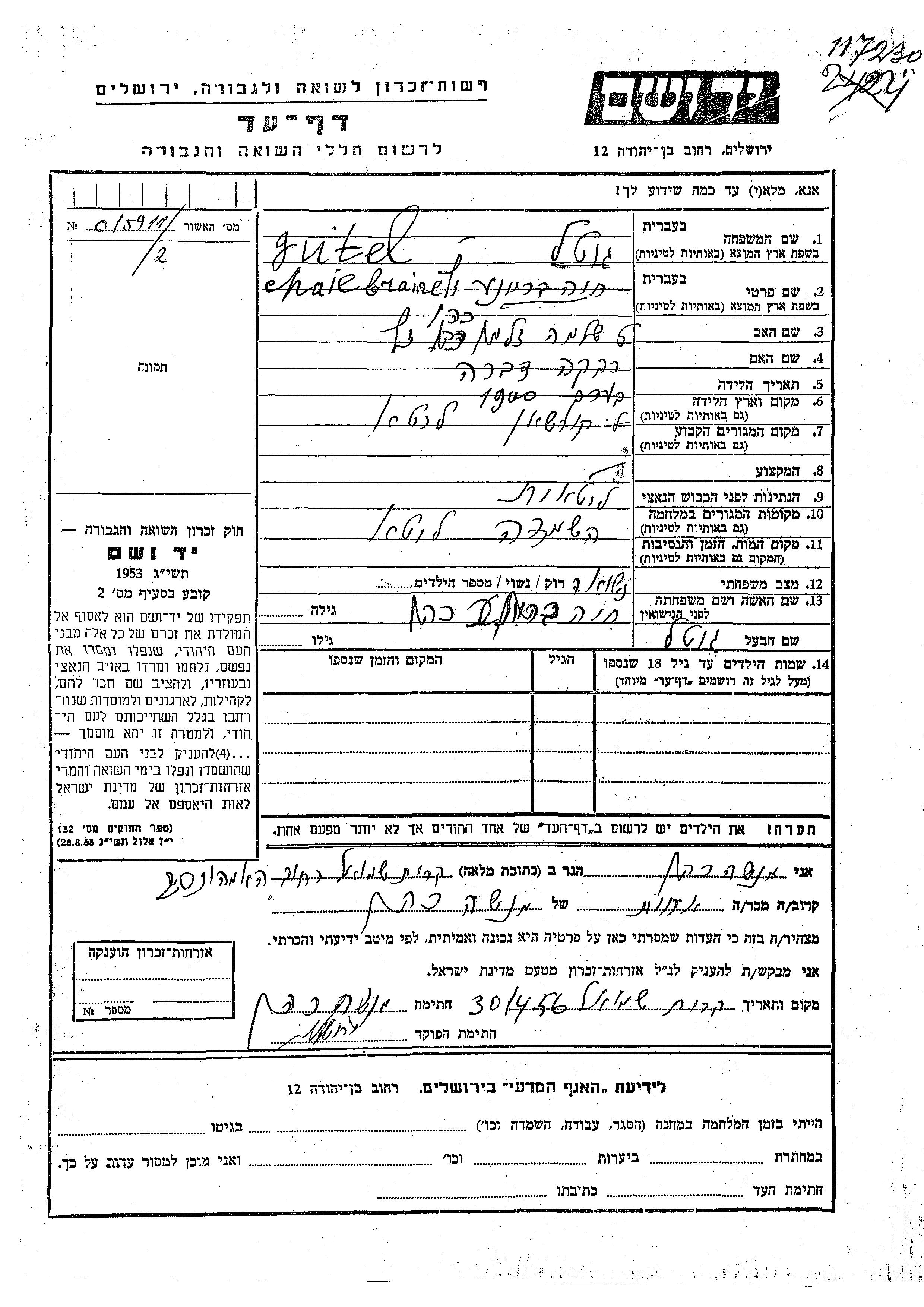 Haie Braine Gutel, geb. Kohen wurde im Jahr 1900 in Kursenai, Litauen geboren. Sie war die Tochter von Shlomo Zalman und Rivka Dvora. Sie war Verheiratet. Während des Krieges war sie in Litauen.