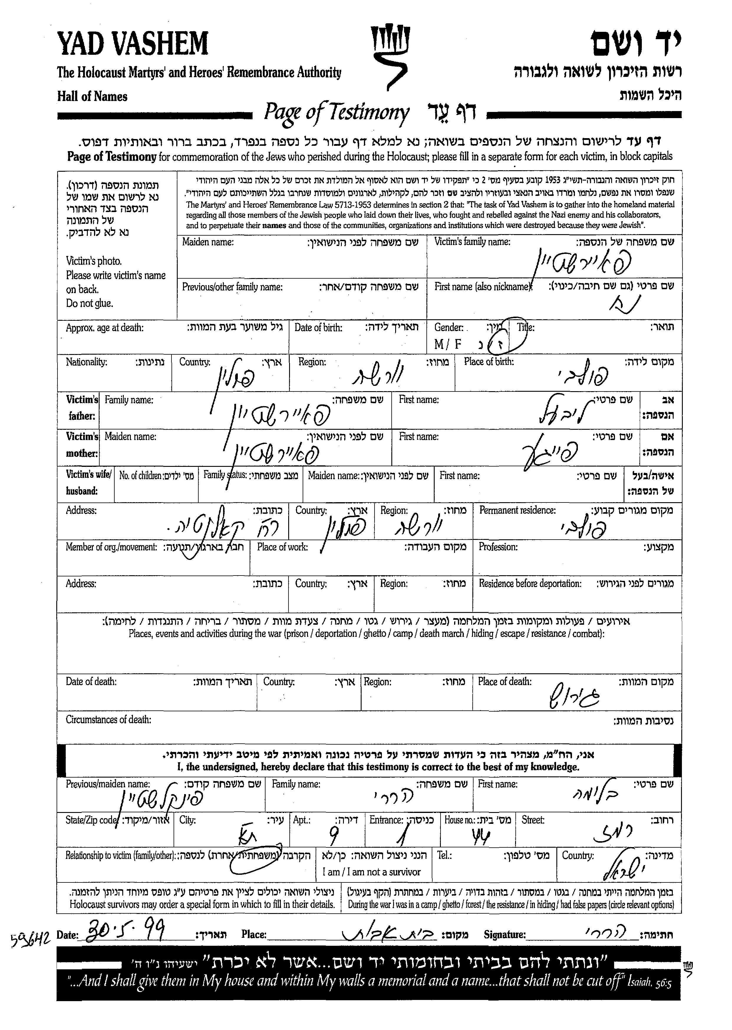 Foiershtein Noakh Polavi, Polen Gedenkblatt