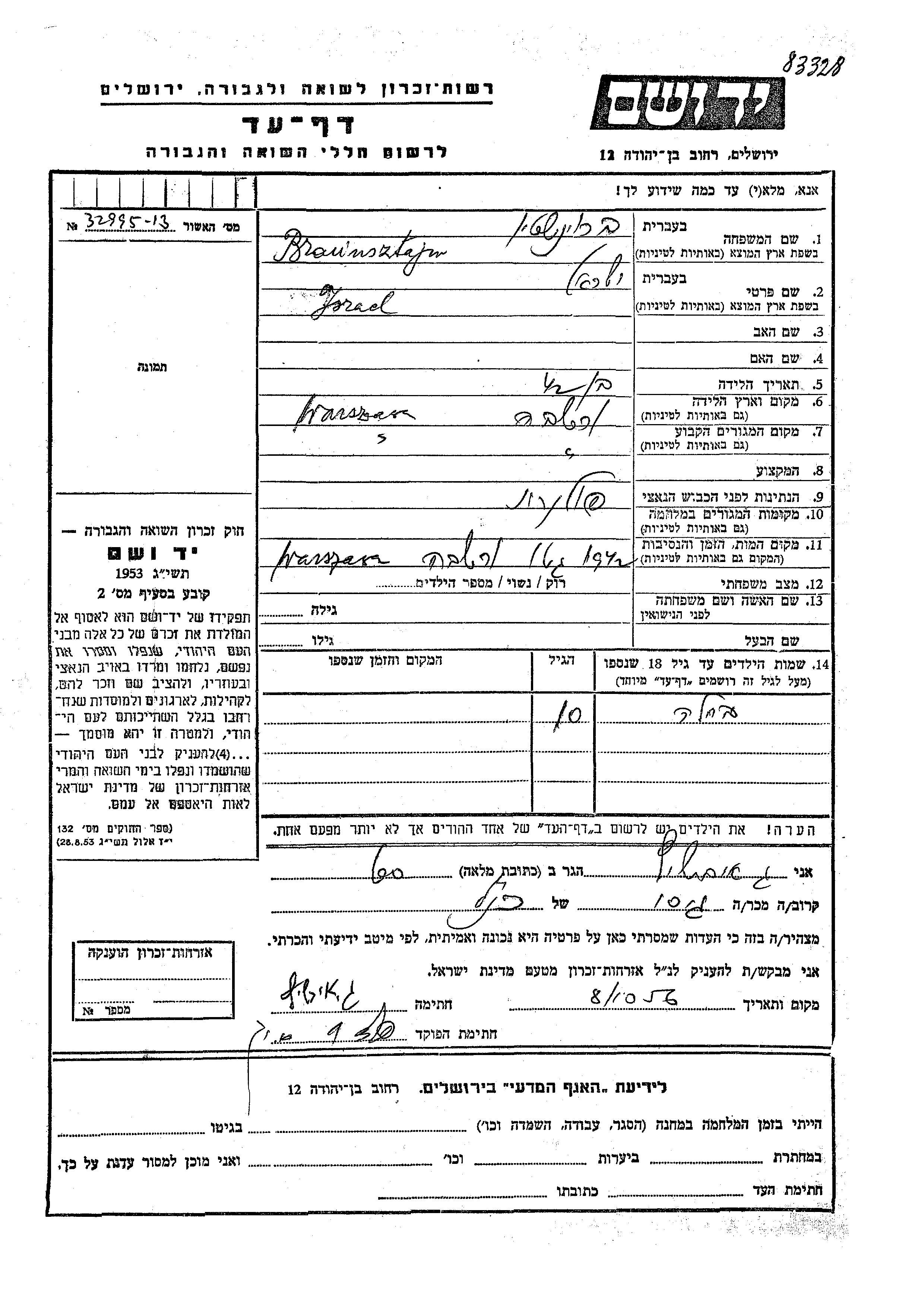 Israel wurde in der Schoah ermordet. Todesort: Warszawa, Polen im Jahr 1942.