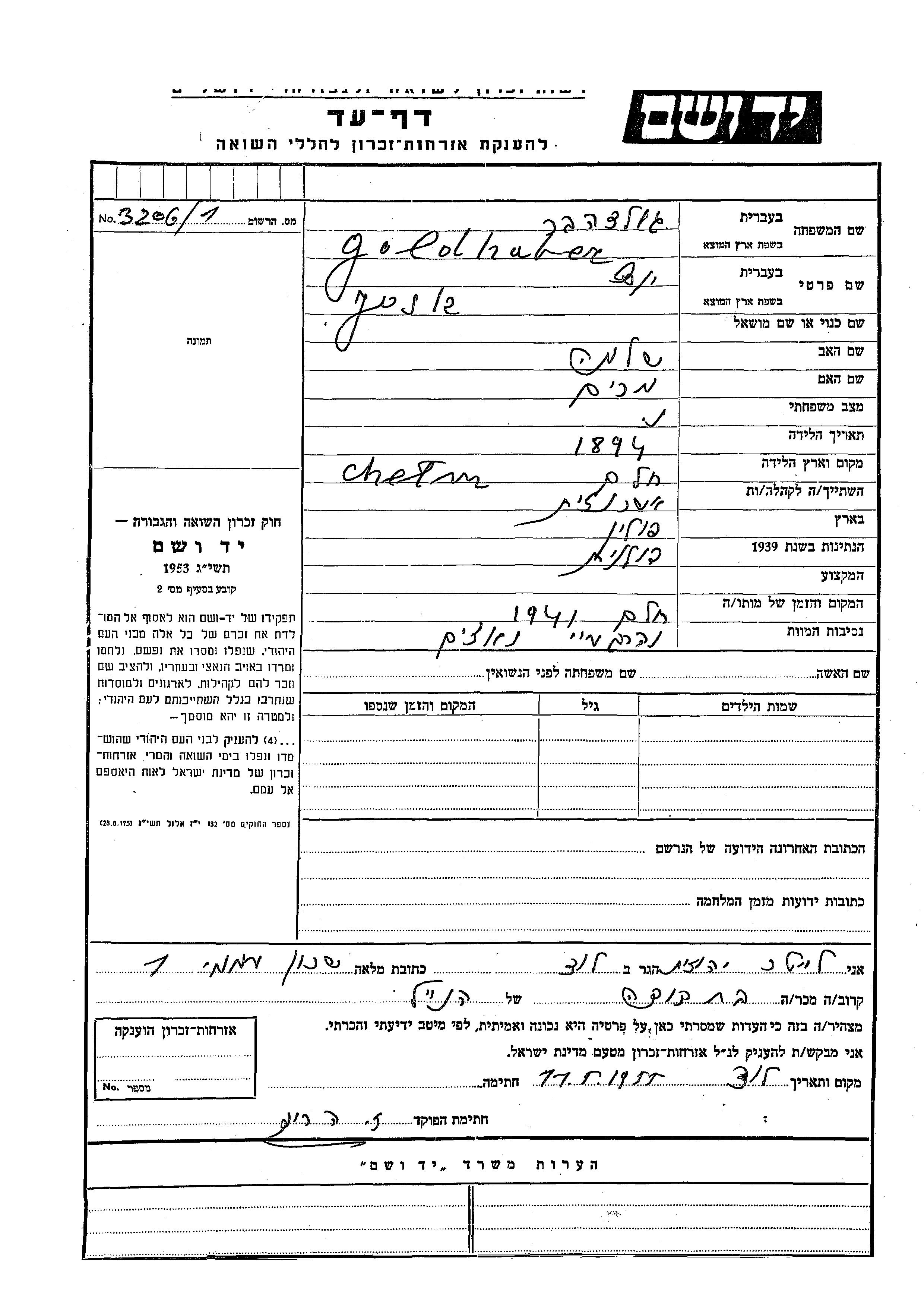Josk wurde in der Schoah ermordet. Todesort: Chelm, Polen im Jahr 1941.