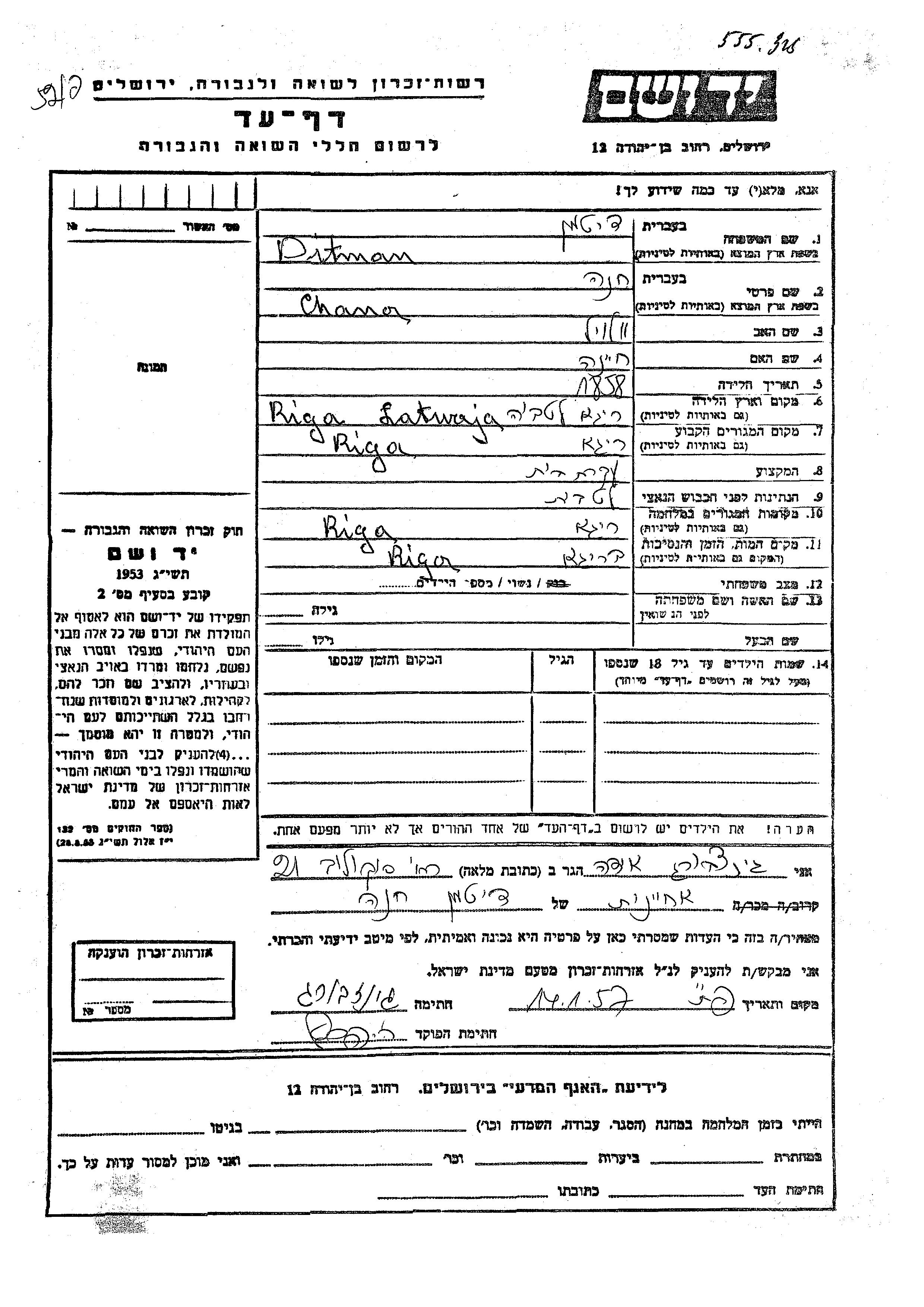 Chana wurde in der Schoah ermordet. Todesort: Riga, Lettland.