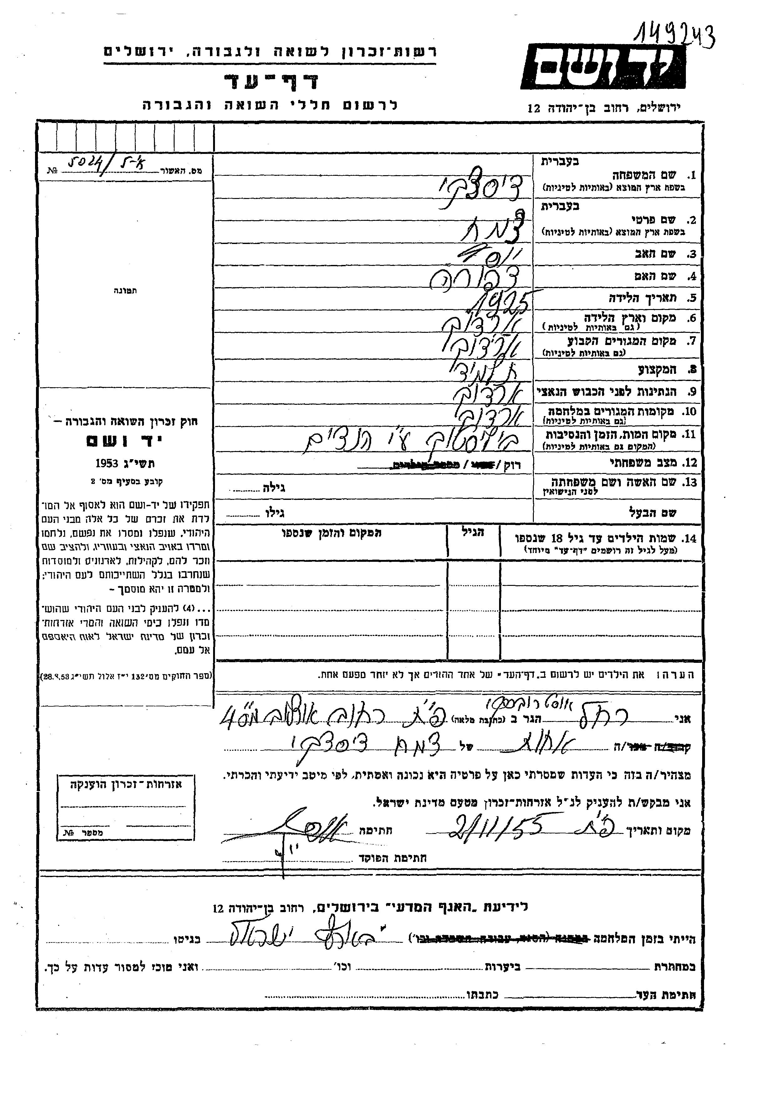 Tzemakh Disatzki wurde im Jahr 1925 in Ardov, Tschechoslowakei geboren. Er war der Sohn von Yosef und Tzipora. Er war Schüler/-in und Ledig. Vor dem Zweiten Weltkrieg lebte er in Ardov, Tschechoslowakei. Während des Krieges war er in Ardov, Tschechoslowakei.