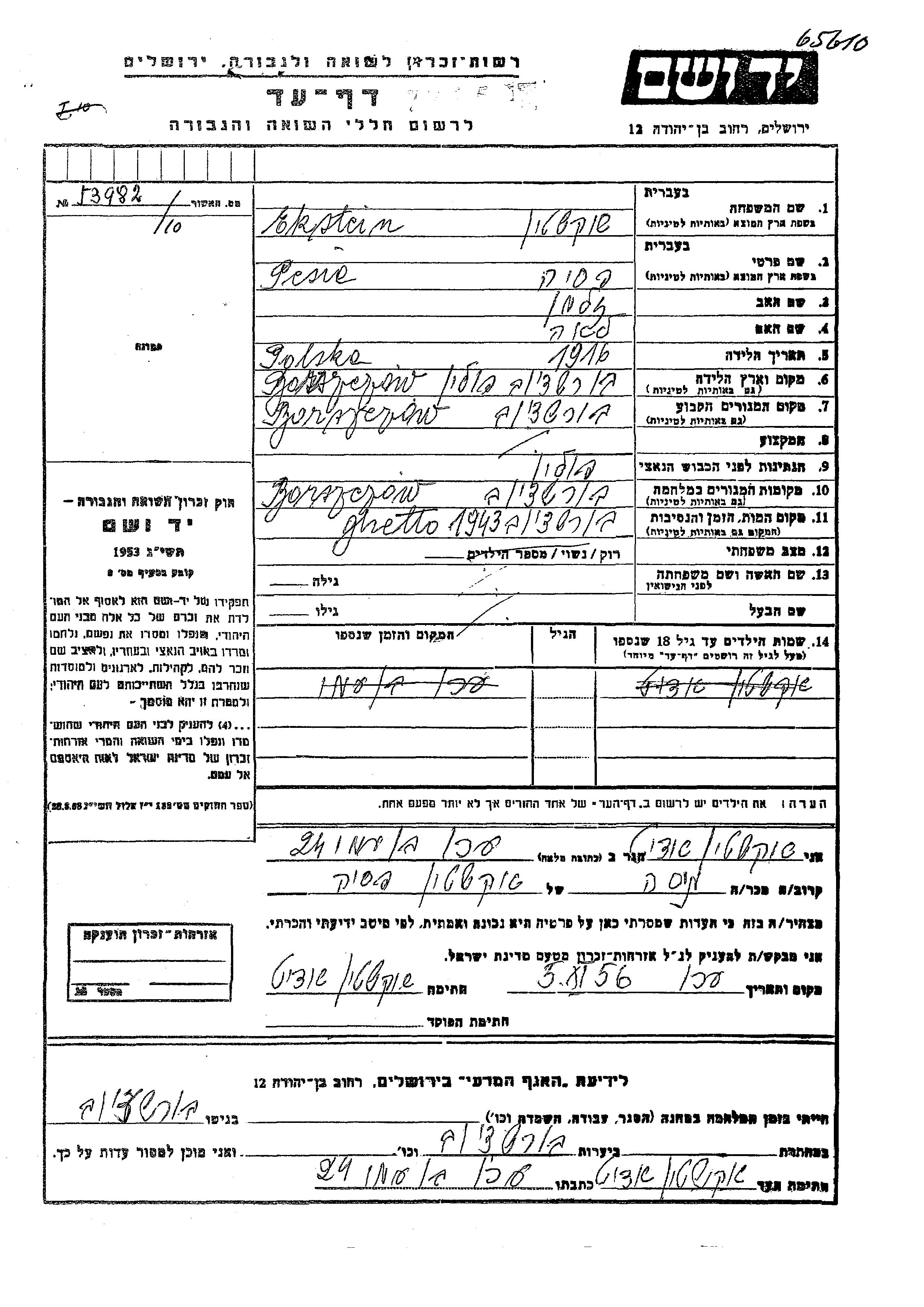 Pesia Ekstein wurde im Jahr 1916 in Borszczow, Polen geboren. Sie war die Tochter von Zalman und Lea. Sie war Ledig. Vor dem Zweiten Weltkrieg lebte sie in Borszczow, Polen. Während des Krieges war sie in Borszczow, Polen.