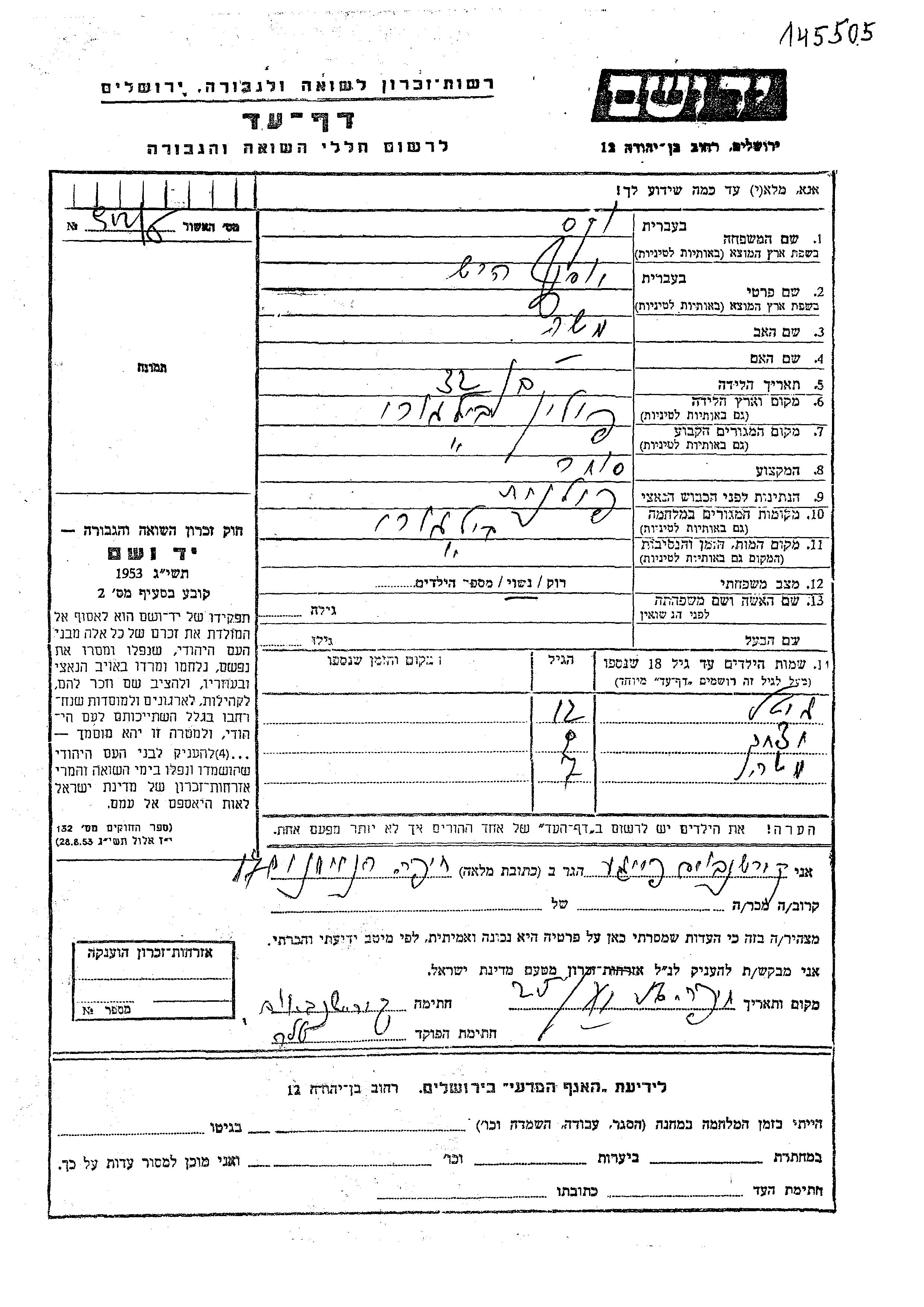 Vaks Yosef Hersh unbekannter Ort, Gedenkblatt