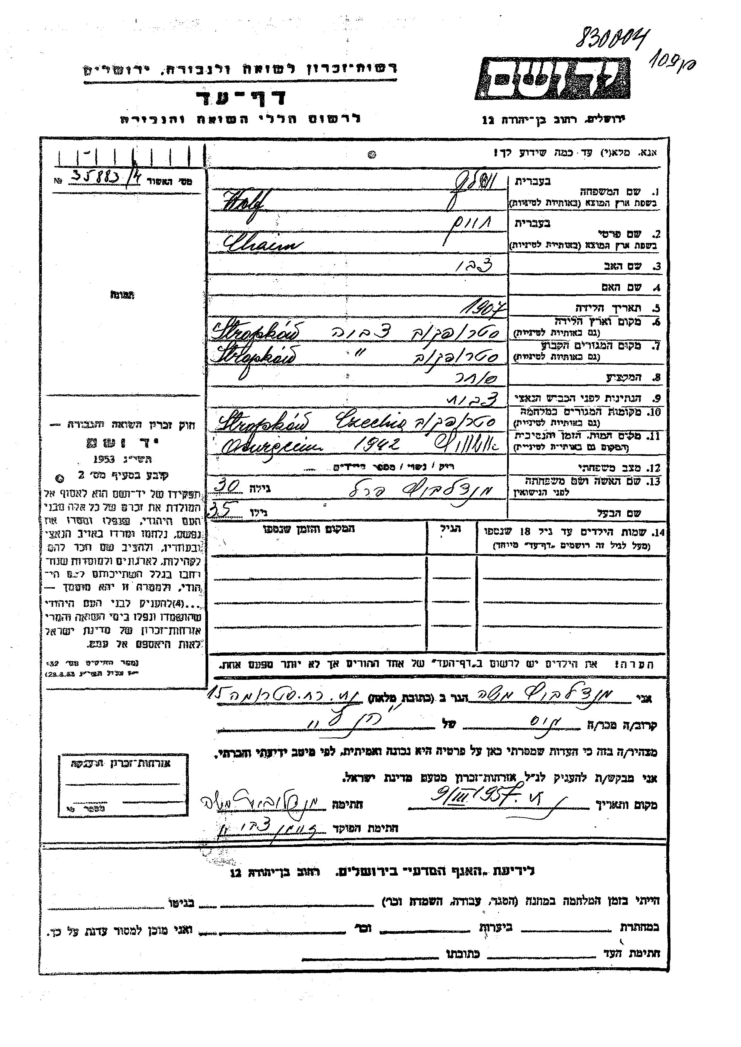 Chaim wurde in der Schoah ermordet. Todesort: Auschwitz, Polen im Jahr 1942.
