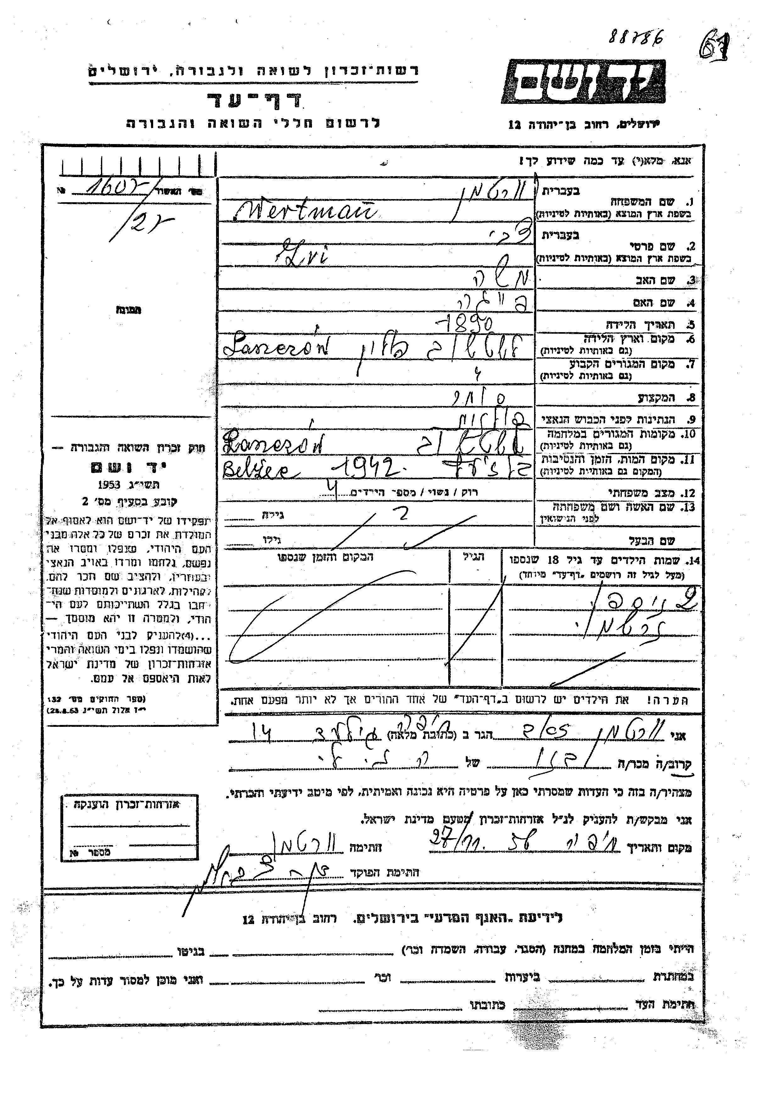Zvi wurde in der Schoah ermordet. Todesort: Belzec, Polen im Jahr 1942.