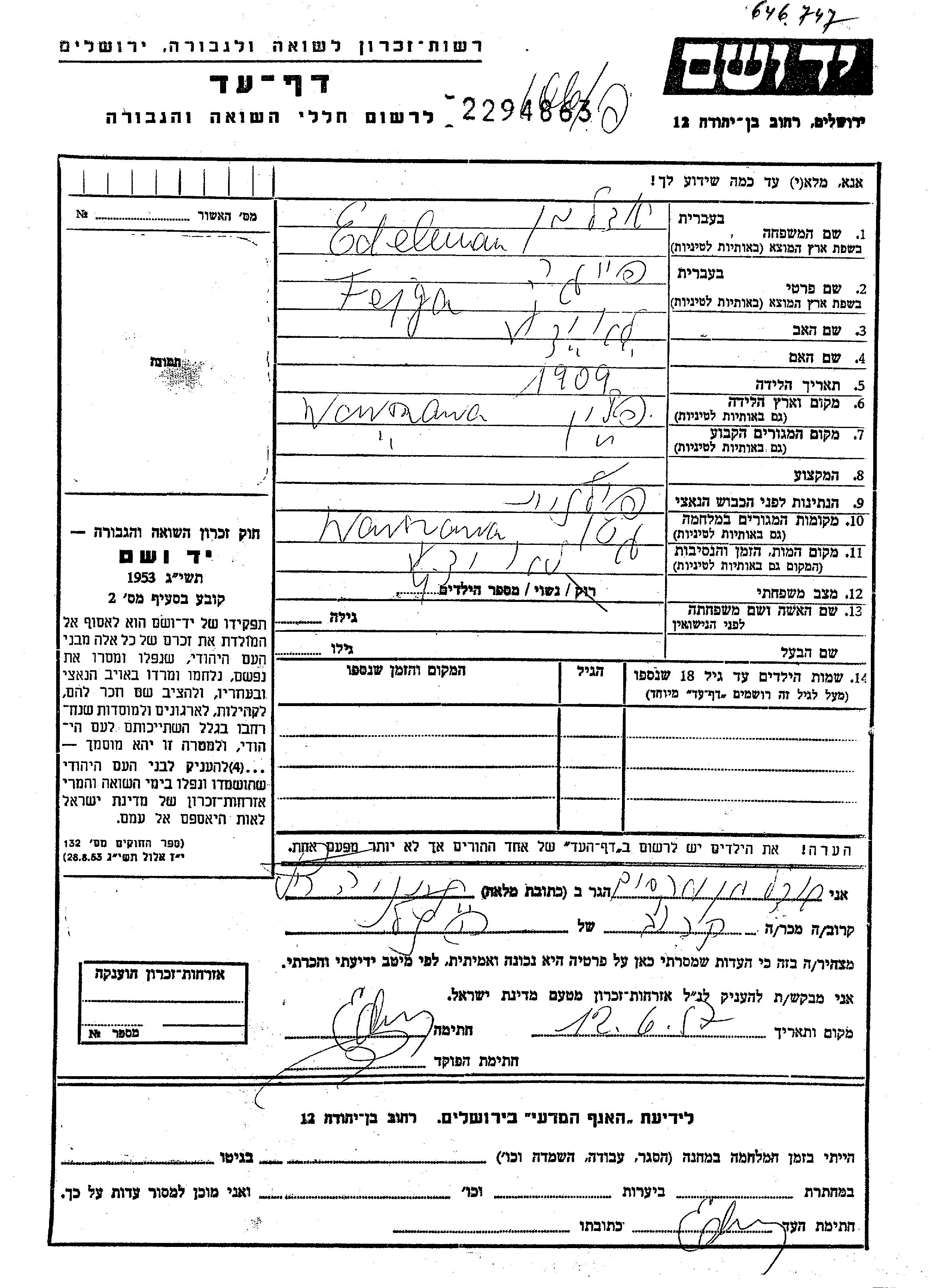 Yad Vashem - Gedenkblätter Sammlung