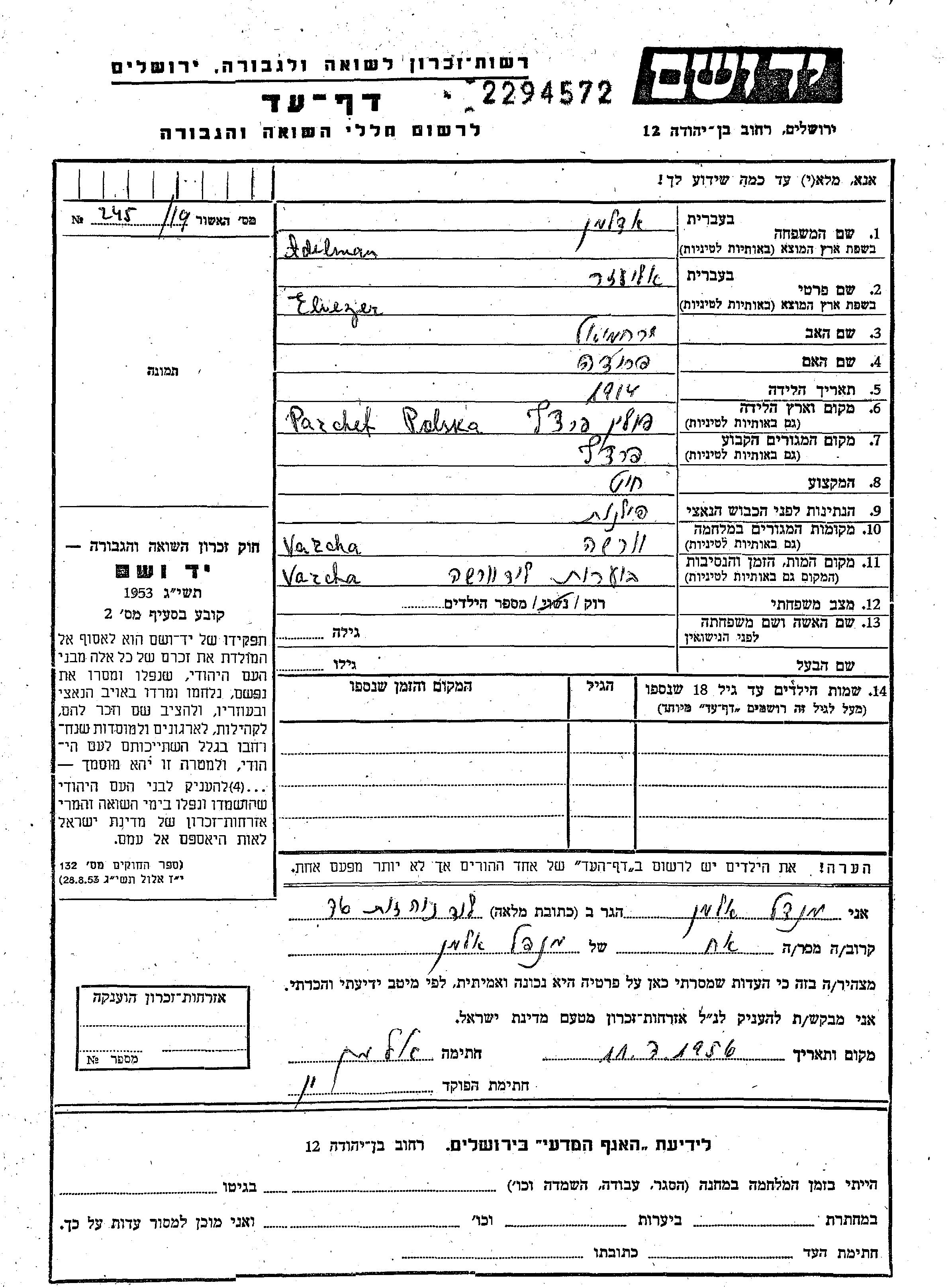 Aufenthaltsort während des Krieges/Schoah
