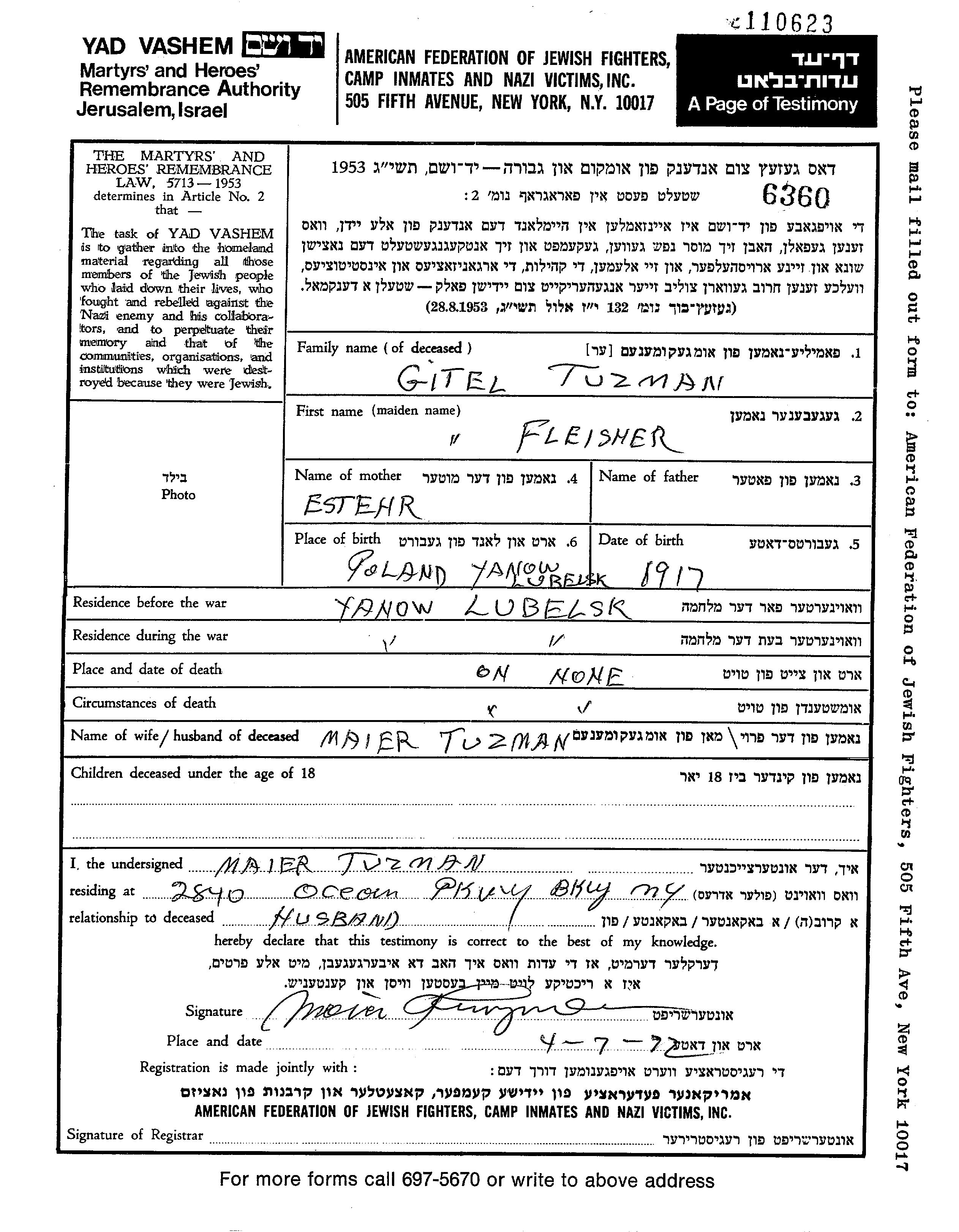 Suche nach einem Todesjahr im Zeitraum der Holocaust: 1933 bis 1945. Bitte wählen Sie 'Exakt' im Auswahlmenü, um nur nach einem einzelnen Jahr zu suchen, alternativ können Sie die flexibleren Optionen '+/- 2 Jahre' oder '+/- 5 Jahre' wählen.