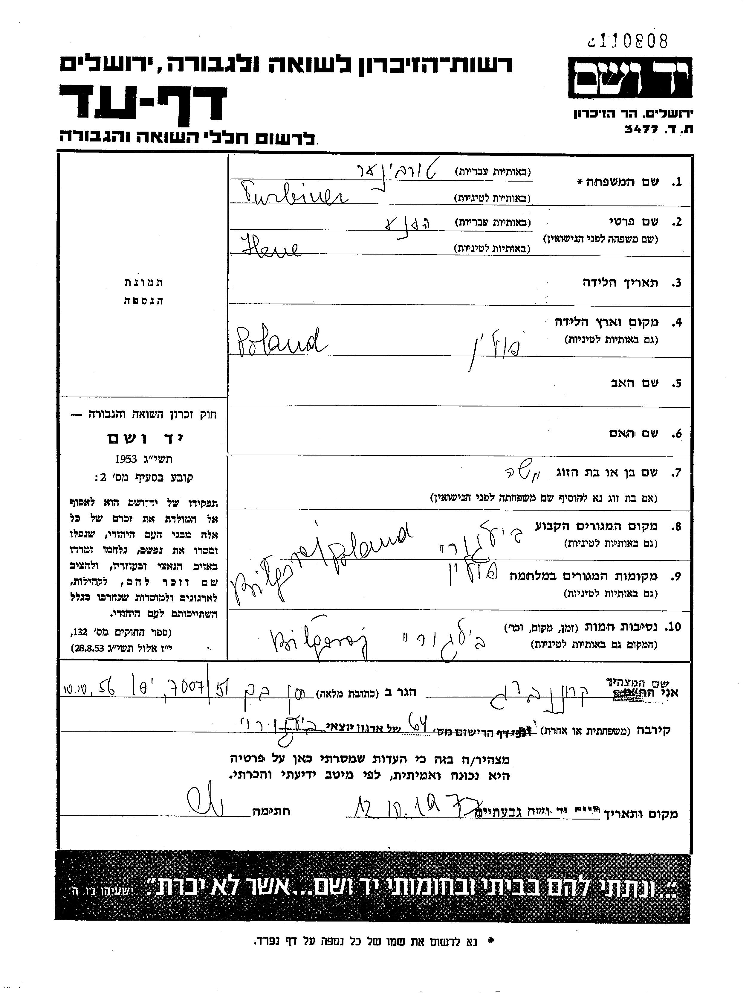 Hene Turbiner wurde in Polen geboren. Sie war mit Moshe Verheiratet.