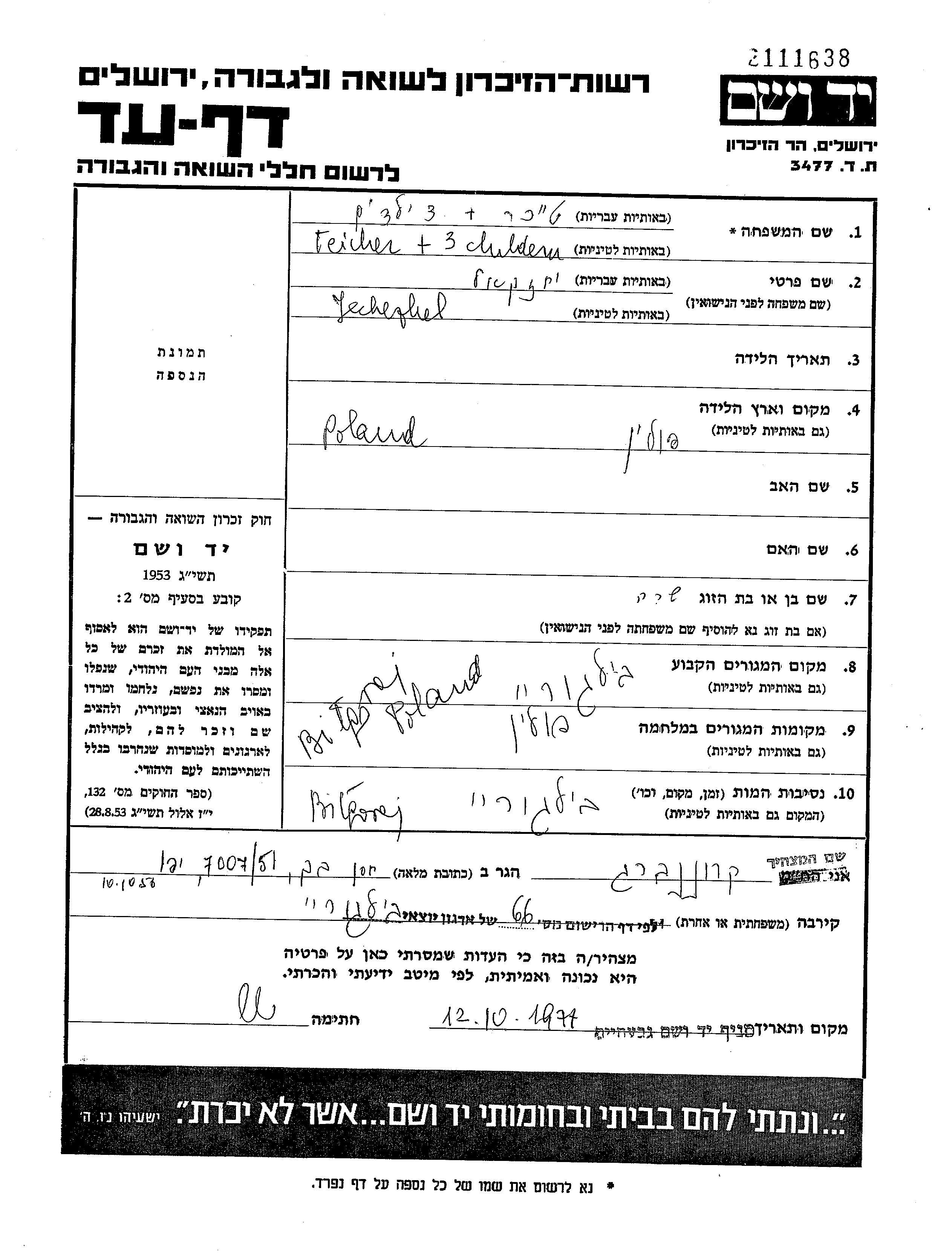 Jechezkel Teicher Teikher wurde in Polen geboren.