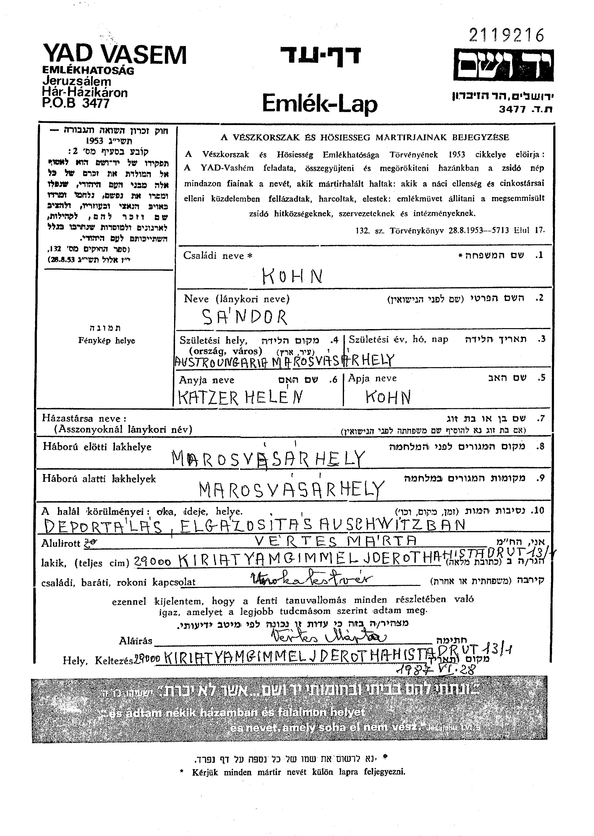 Sandor wurde in der Schoah ermordet. Todesort: Auschwitz, Polen.