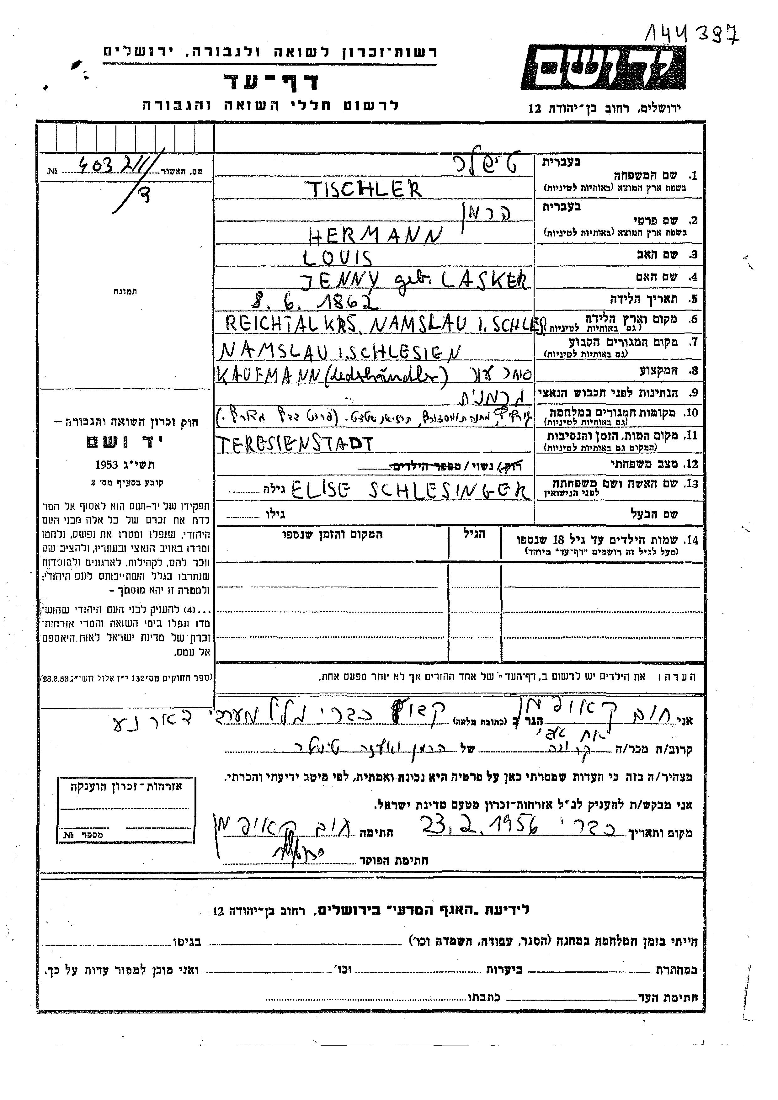 Hermann wurde in der Schoah ermordet. Todesort: Theresienstadt, Tschechoslowakei.