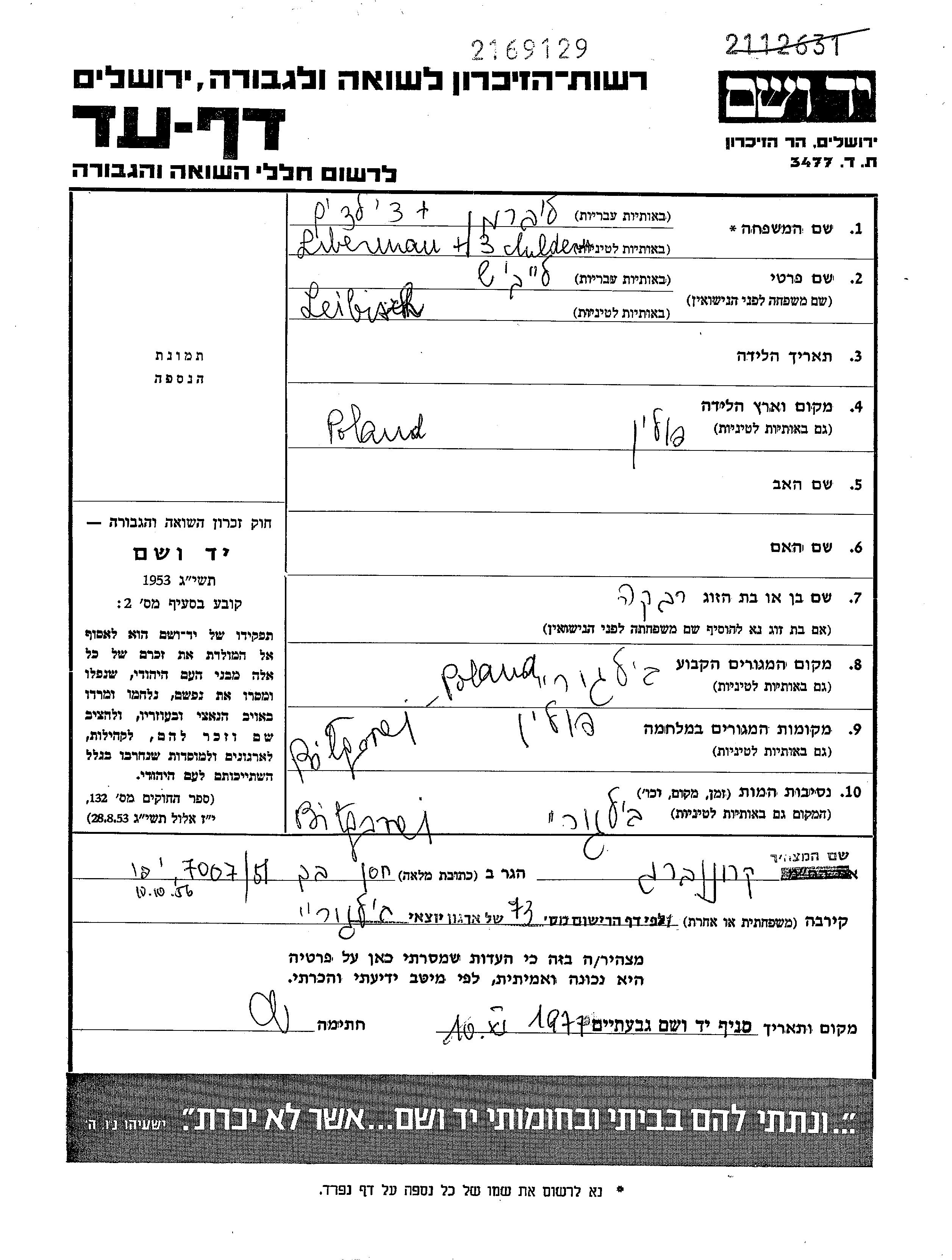 Leibisch Liberman wurde in Polen geboren. Er war mit Rivka Verheiratet.