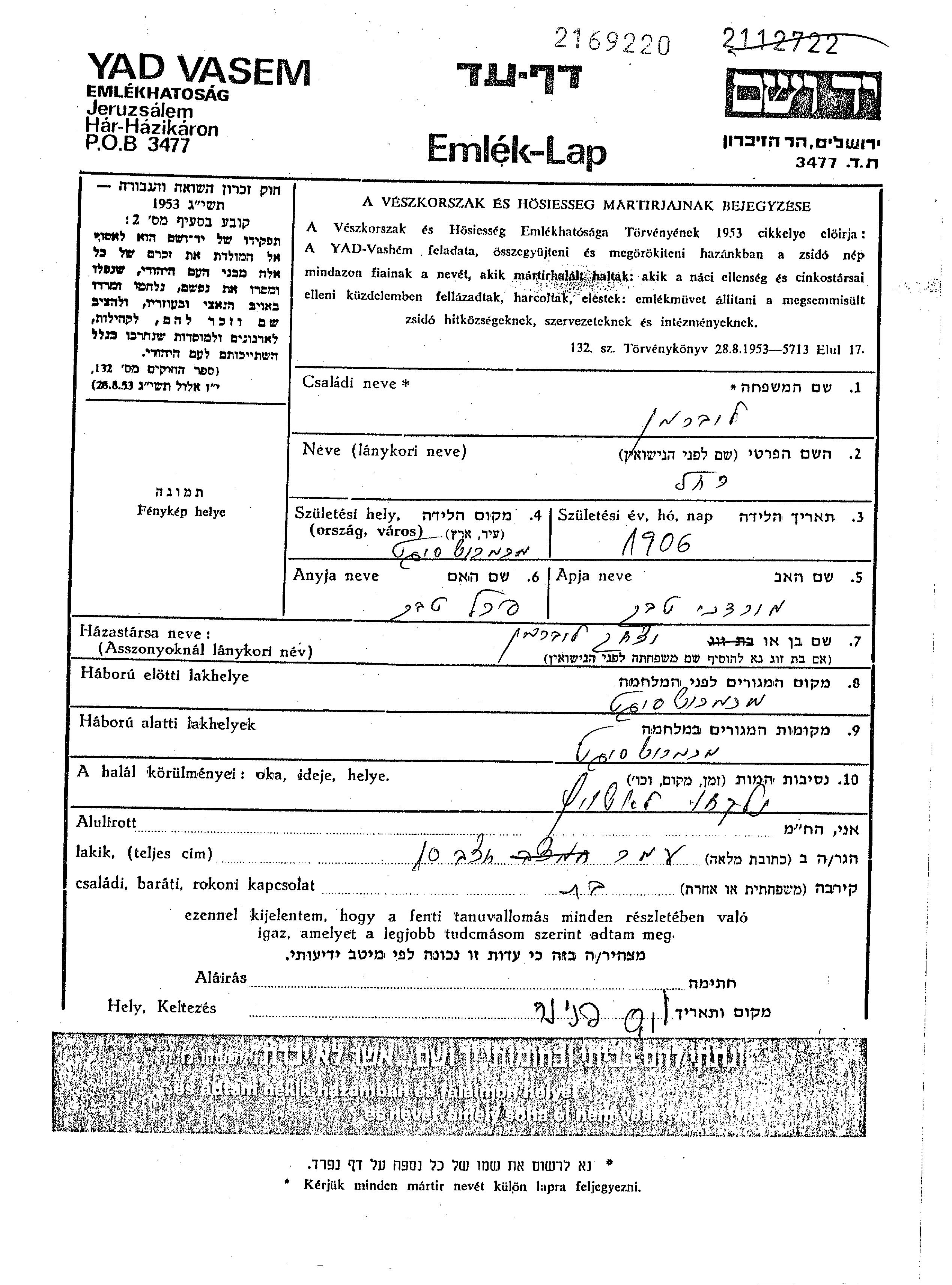 Liberman Rakhel Roza 1906 Maramarossziget, Rumänien Gedenkblatt