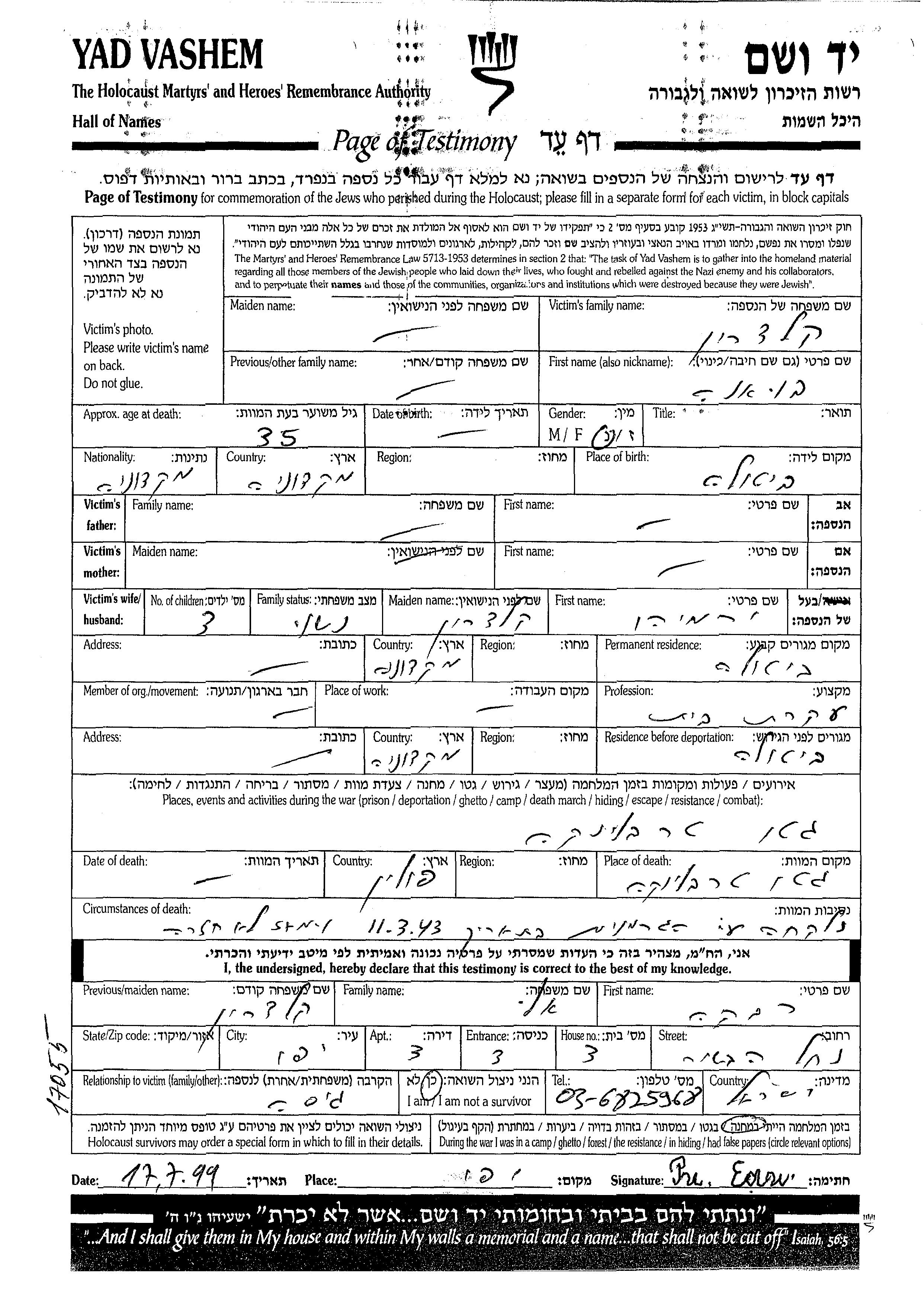 Buena wurde in der Schoah ermordet. Todesort: Treblinka, Polen.