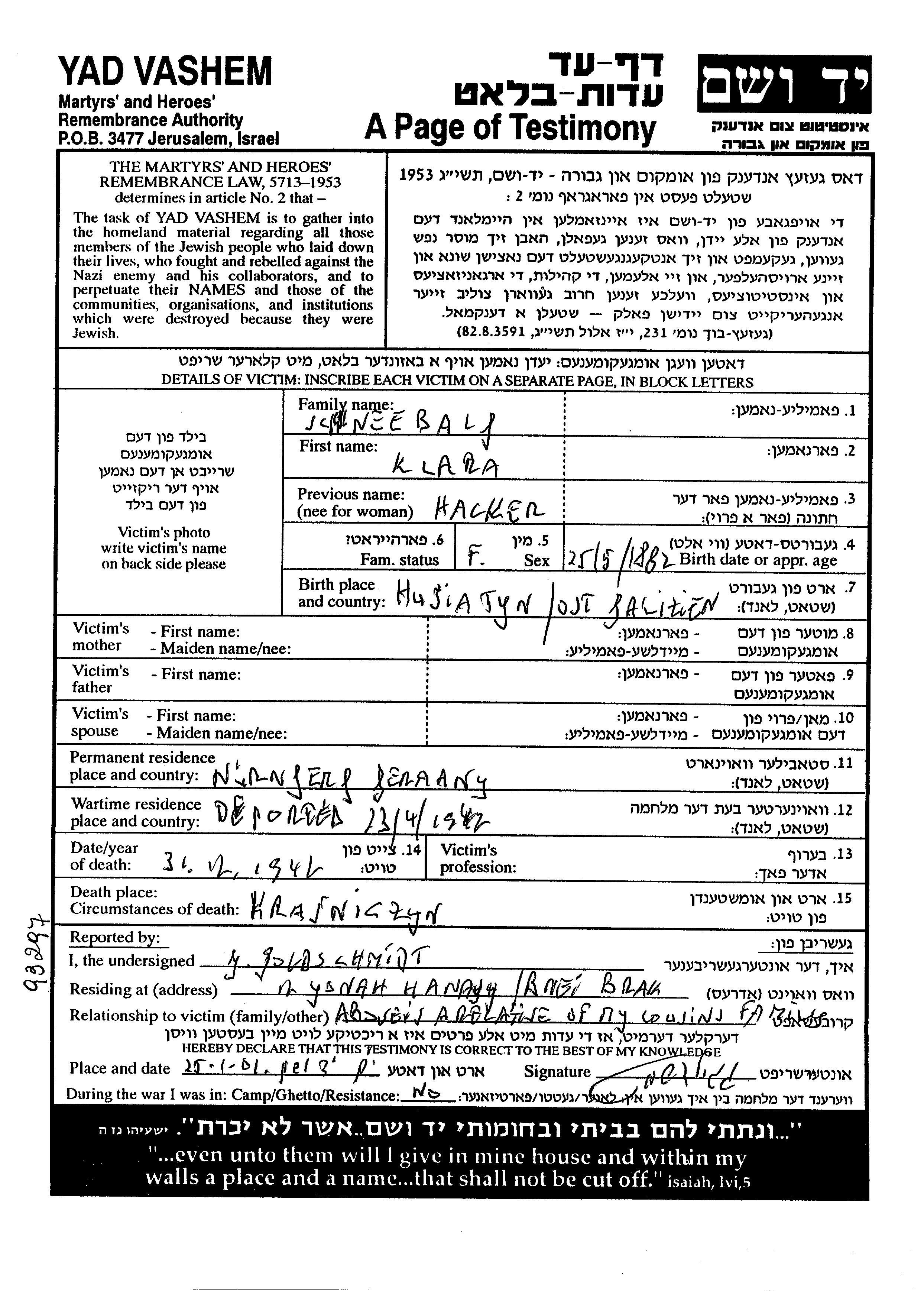 Klara wurde in der Schoah ermordet. Todesort: Krasniczyn, Polen im Jahr 1942.
