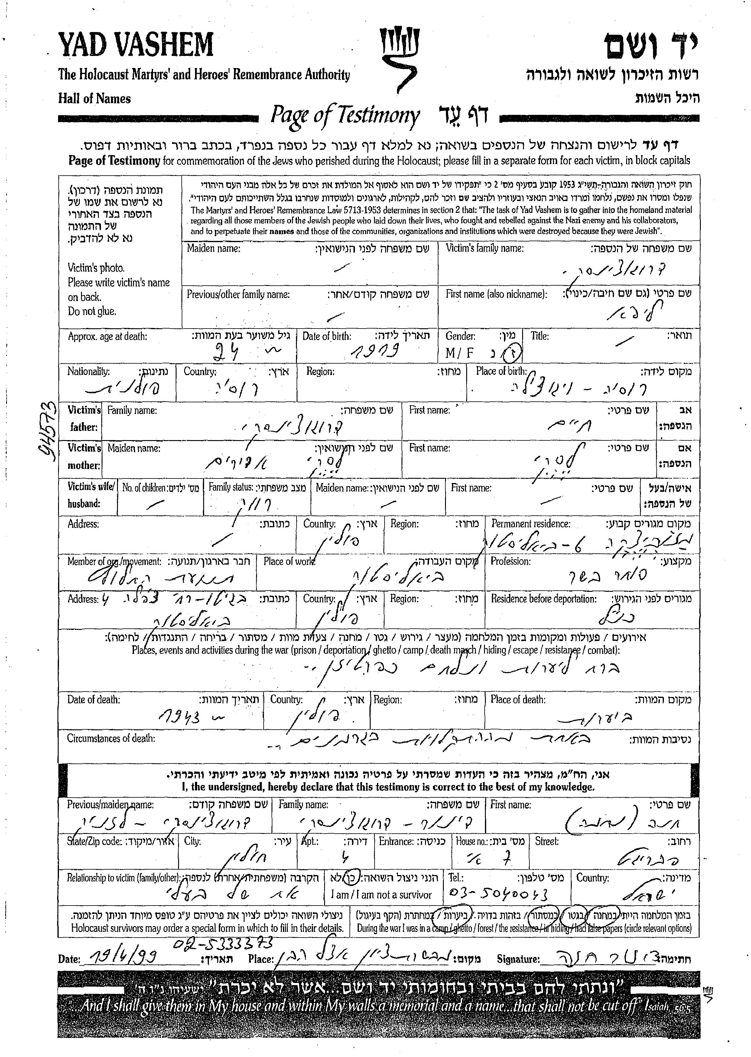 Lipa wurde in der Schoah ermordet. Todesort: Polen im Jahr 1943.