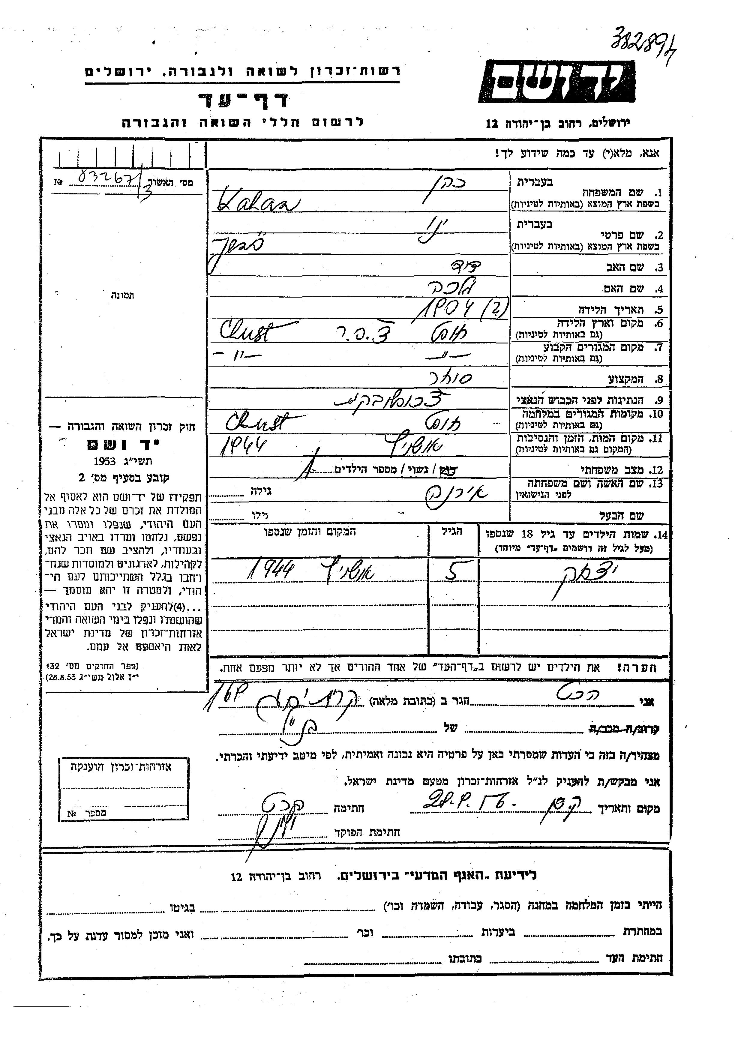 Jeno Kahan wurde im Jahr 1904 in Chust, Tschechoslowakei geboren. Er war der Sohn von David und Malka. Er war Kaufmann/-frau und mit Irena Verheiratet. Vor dem Zweiten Weltkrieg lebte er in Chust, Tschechoslowakei. Während des Krieges war er in Chust, Tschechoslowakei.