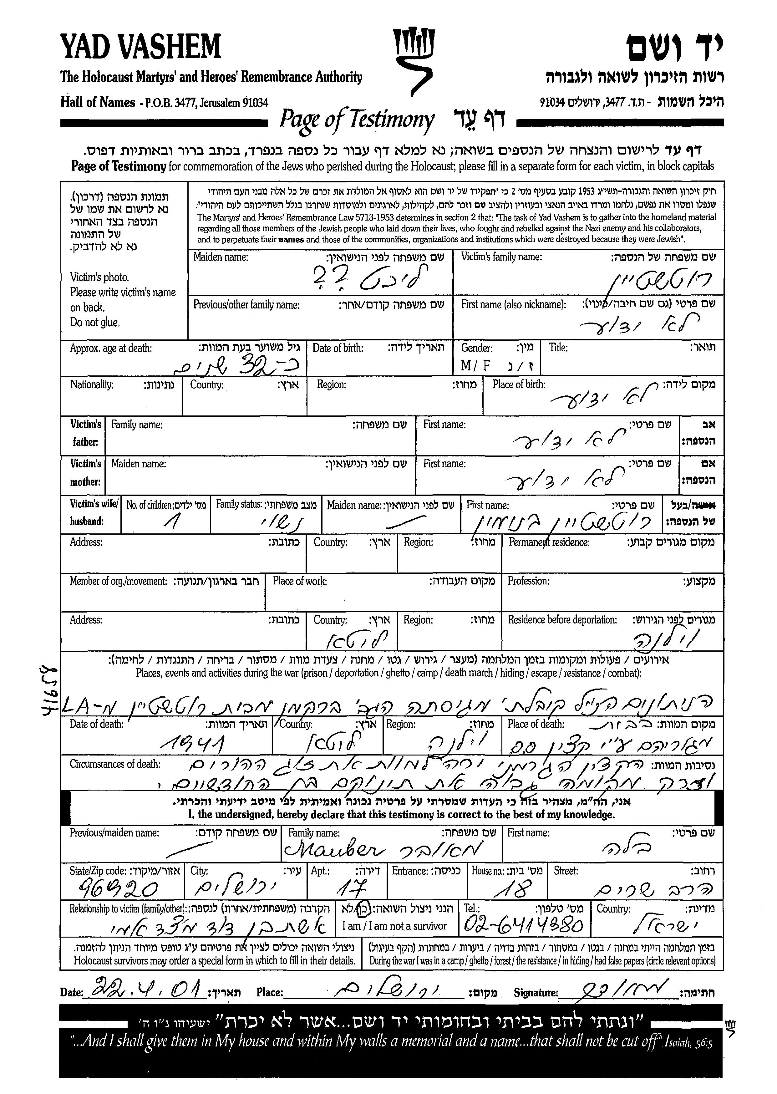 Sie wurde in der Schoah ermordet. Todesort: Vilna, Polen im Jahr 1941.