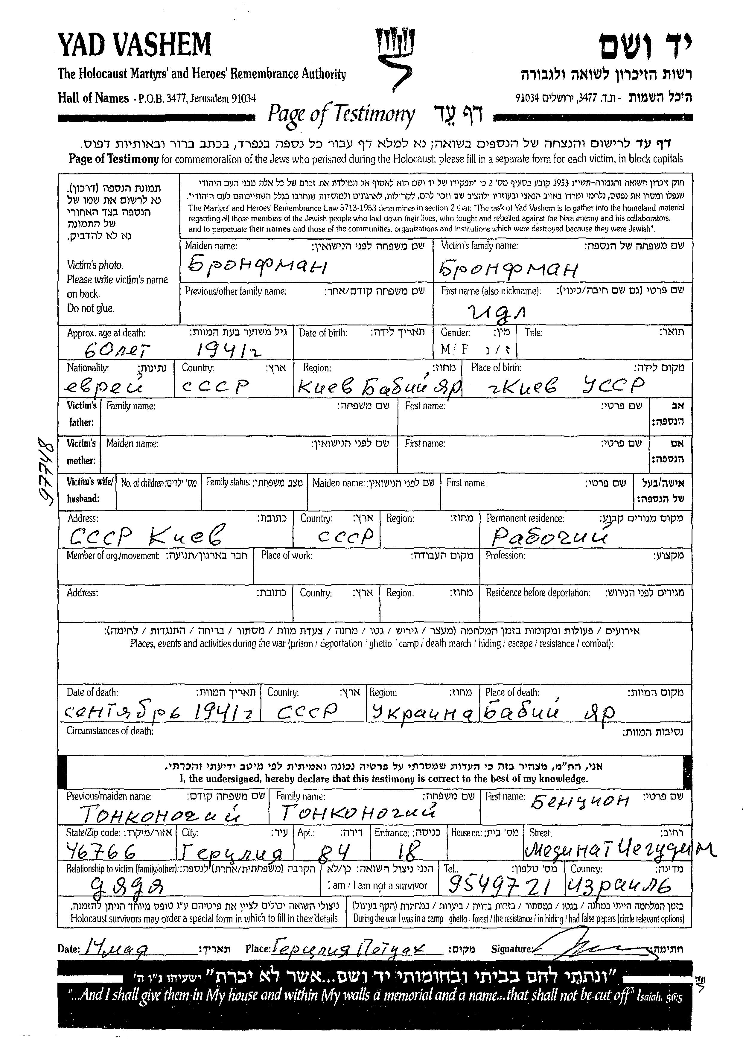 Idl wurde in der Schoah ermordet. Todesort: Babi Yar, Ukraine (UdSSR) im Jahr 1941.