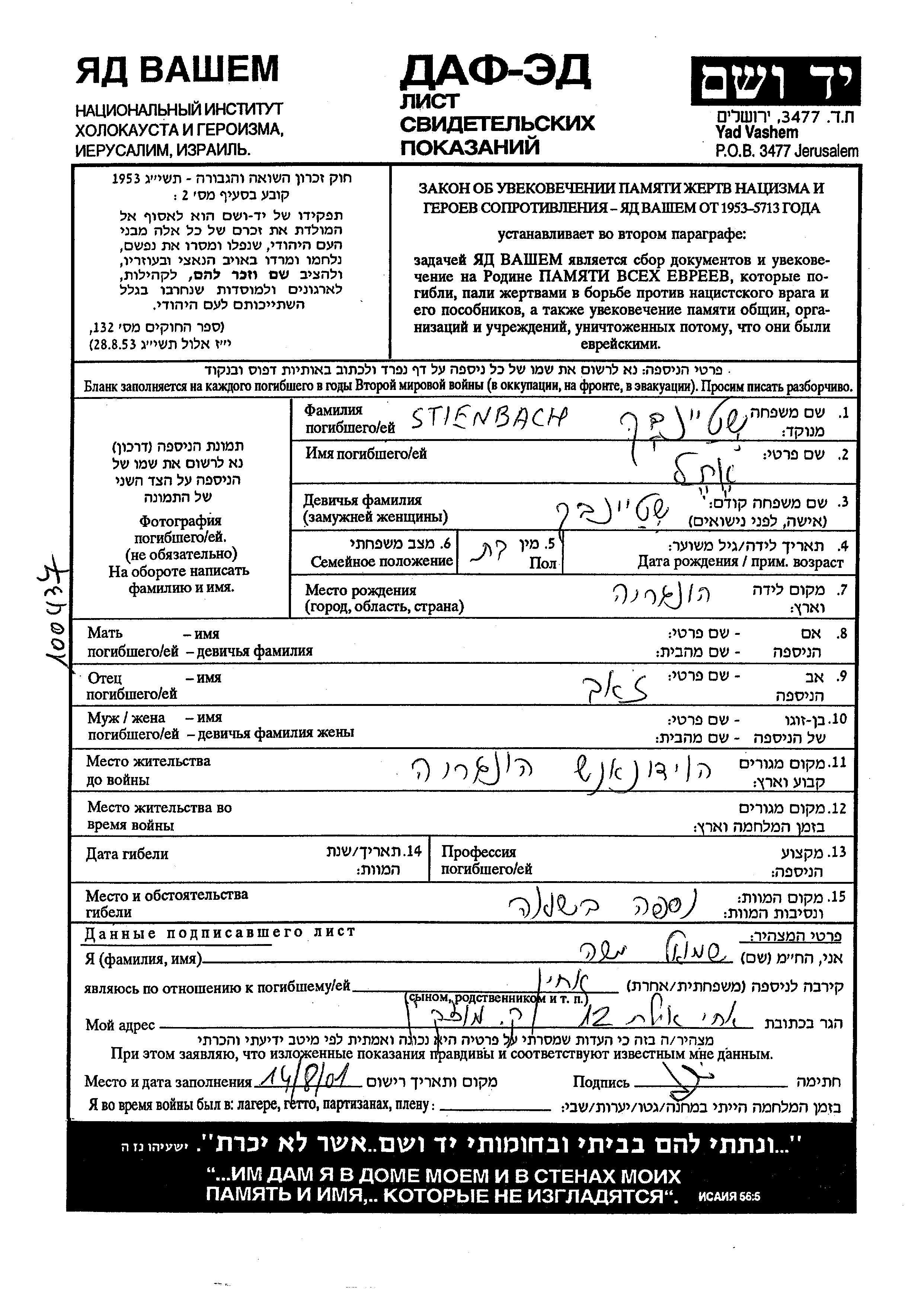 Yad Vashem - Gedenkblätter Sammlung