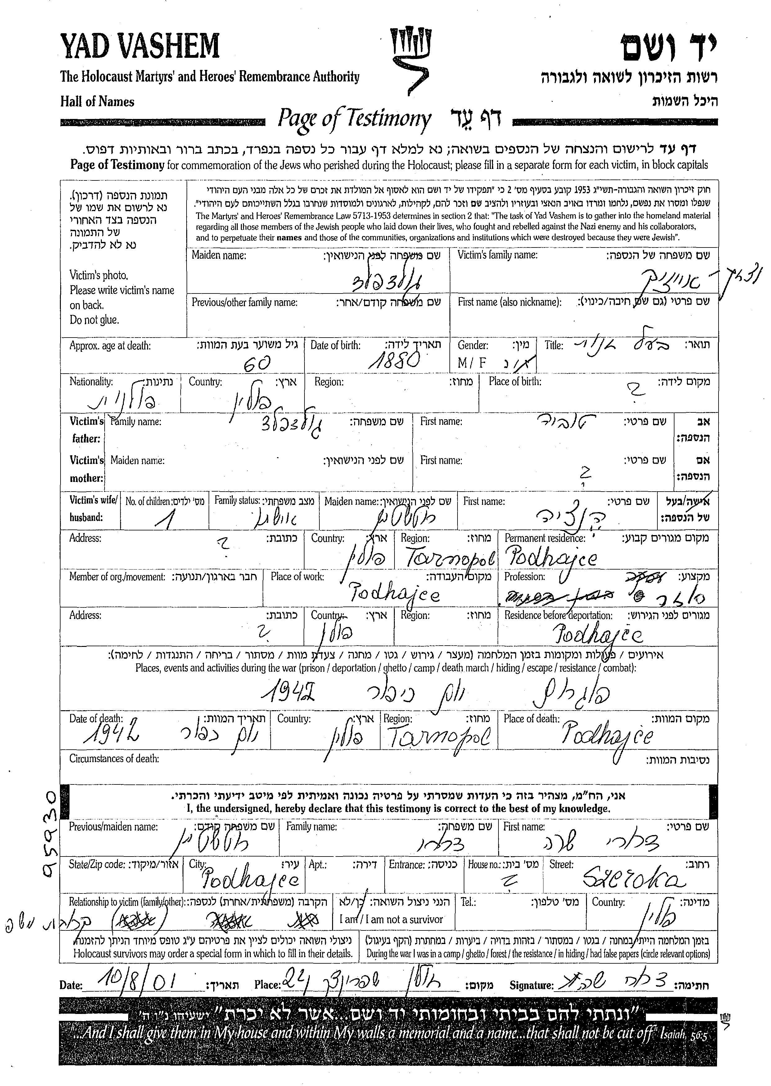 Yitzkhak wurde in der Schoah ermordet. Todesort: Podhajce, Polen im Jahr 1942.