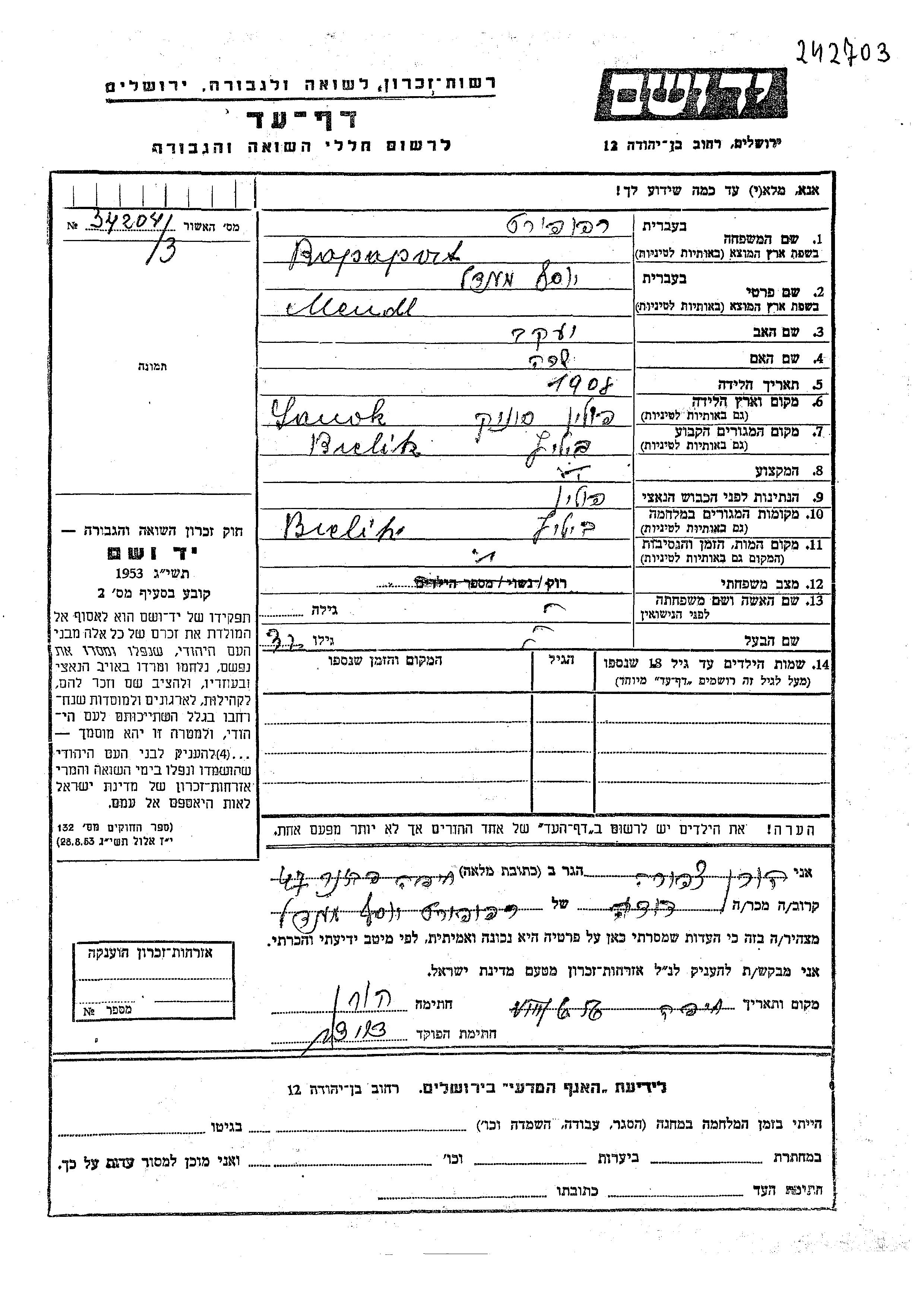 Mendl Yosef wurde in der Schoah ermordet.