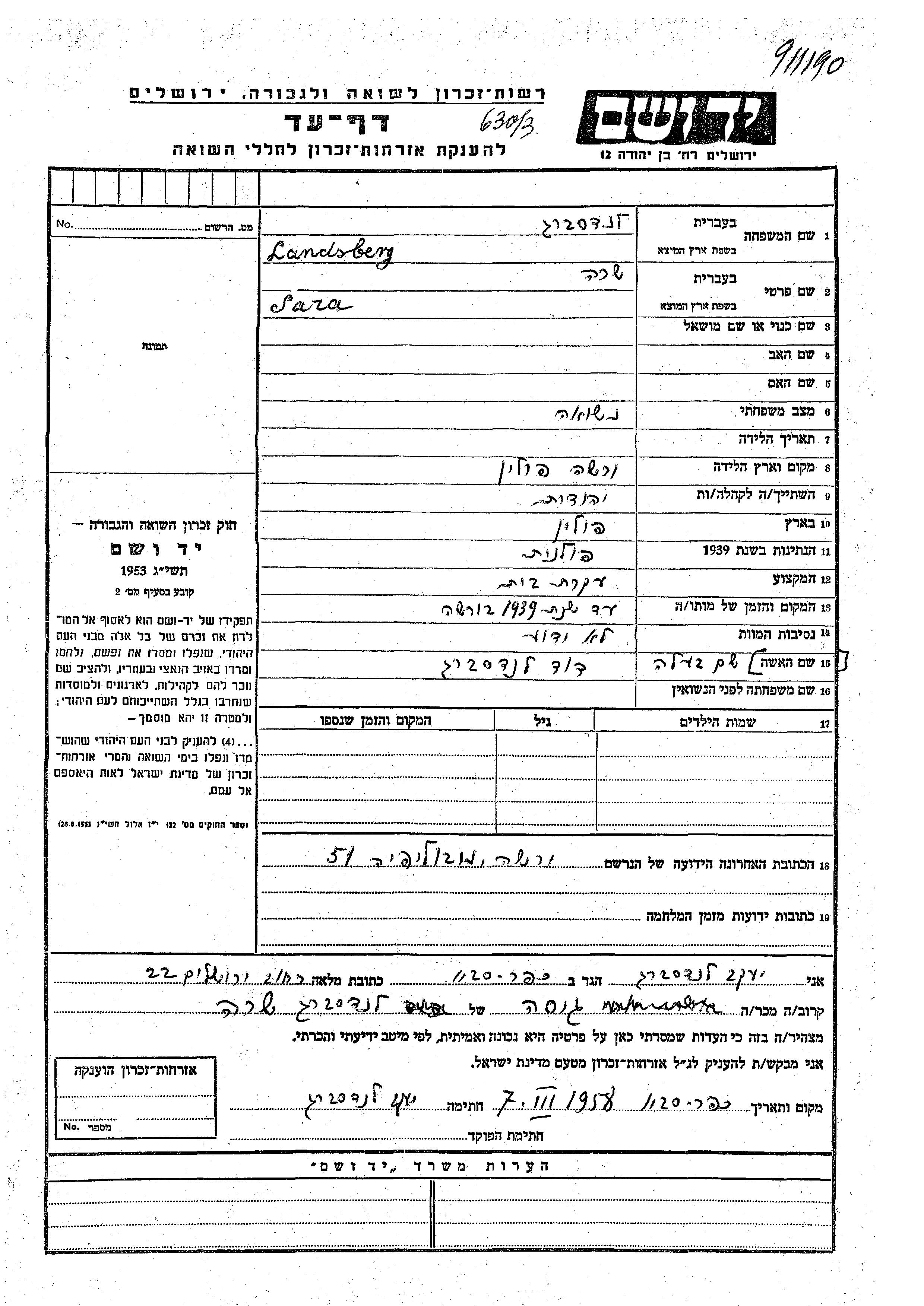 Sara Landsberg wurde in Warsaw, Polen geboren. Sie war Hausfrau und mit David Verheiratet.