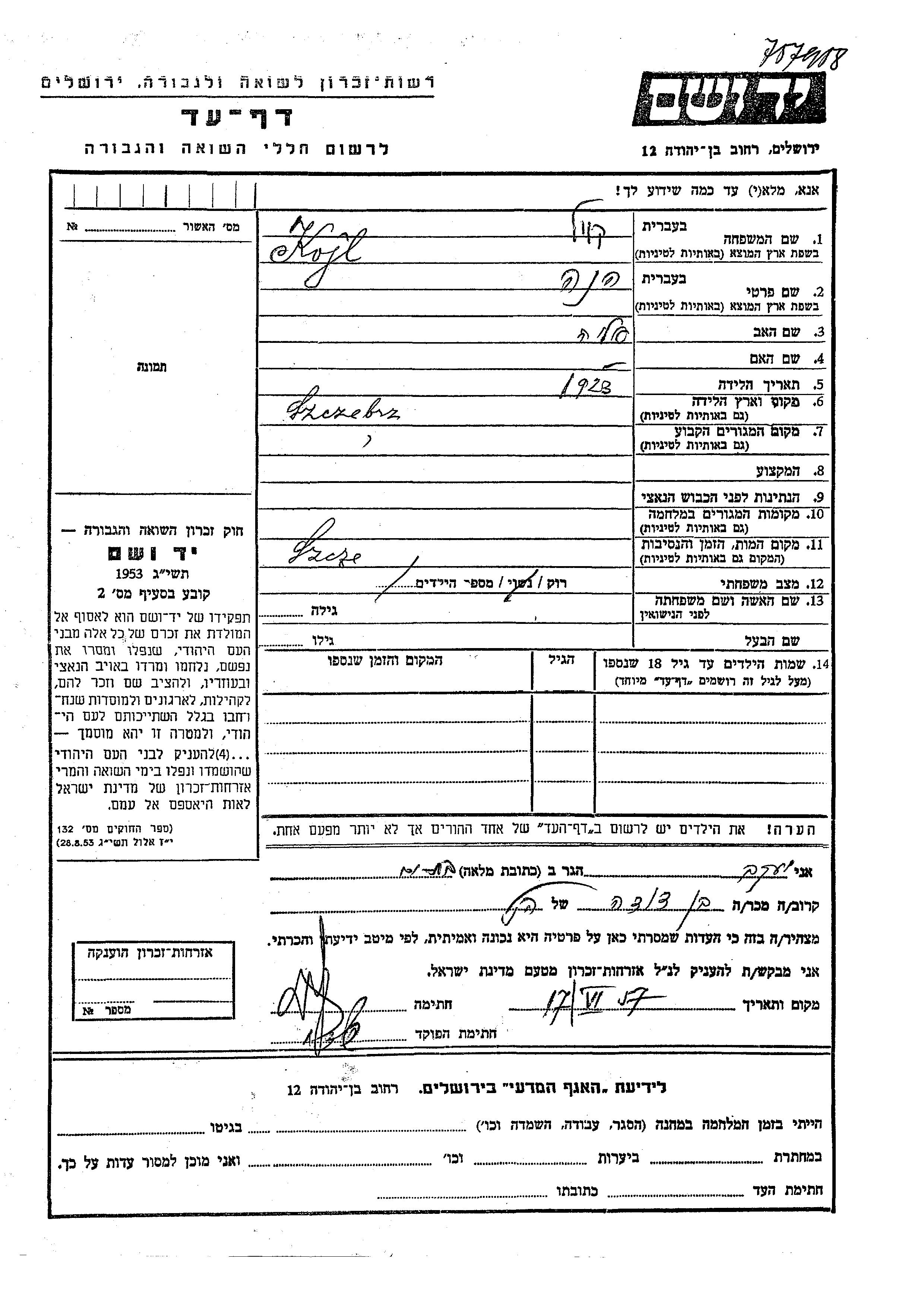 Suche nach einem Todesjahr im Zeitraum der Holocaust: 1933 bis 1945. Bitte wählen Sie 'Exakt' im Auswahlmenü, um nur nach einem einzelnen Jahr zu suchen, alternativ können Sie die flexibleren Optionen '+/- 2 Jahre' oder '+/- 5 Jahre' wählen.
