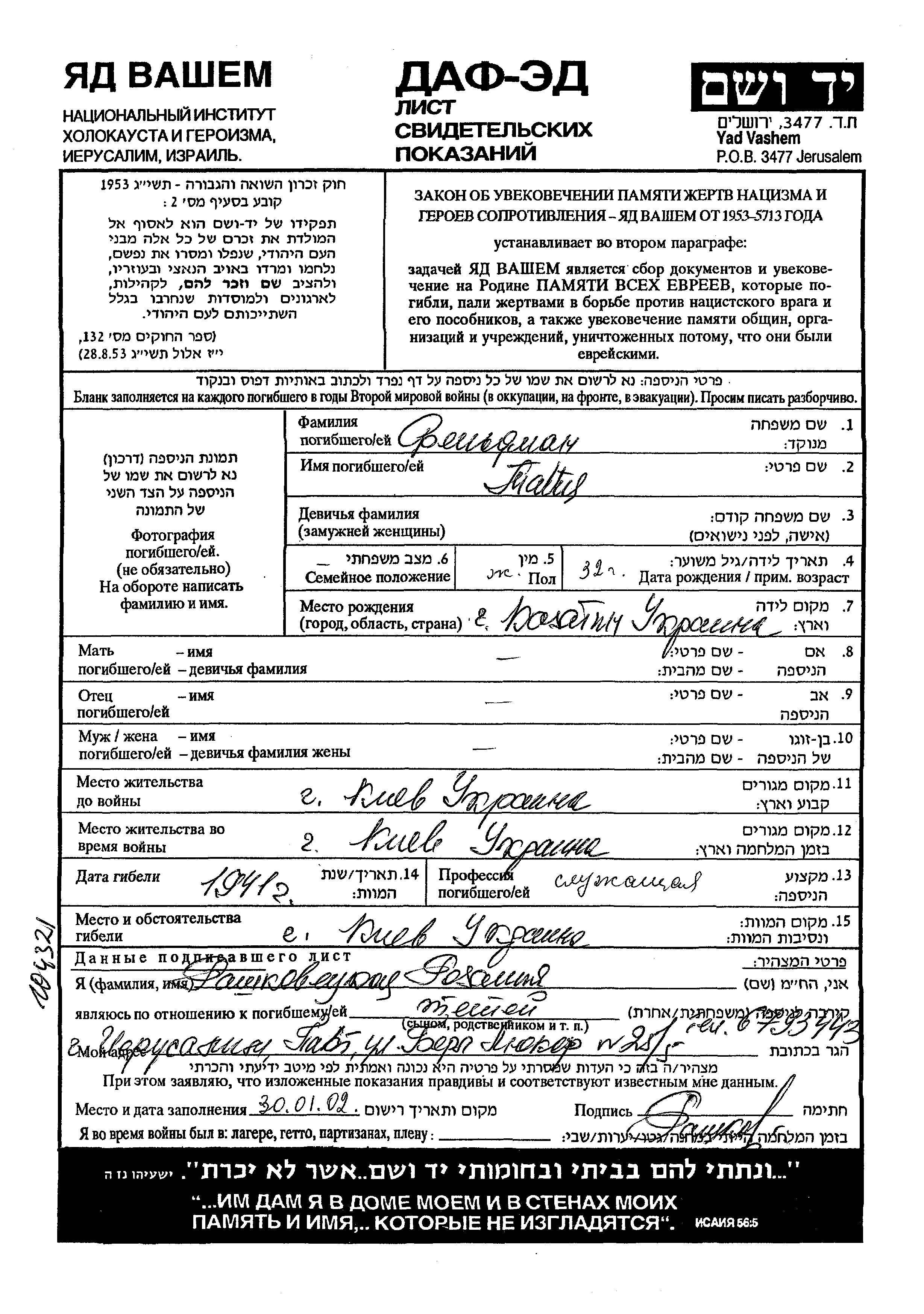 Tanya wurde in der Schoah ermordet. Todesort: Kiyev, Ukraine (UdSSR) im Jahr 1941.