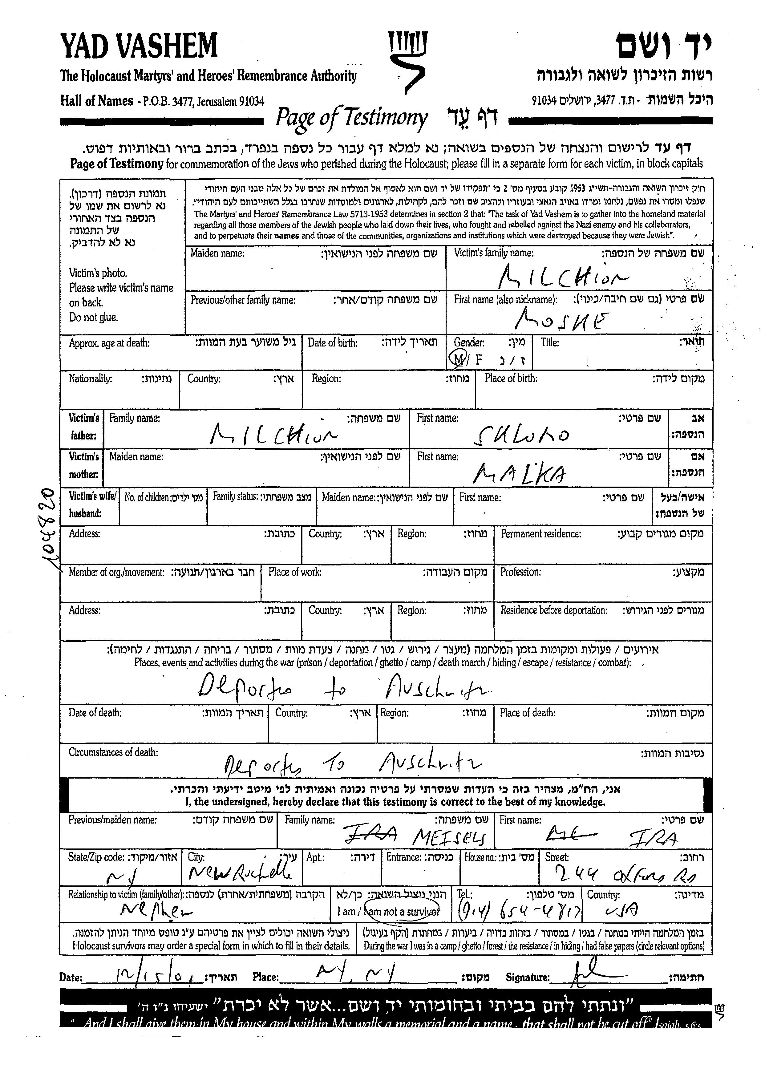 Moshe wurde in der Schoah ermordet. Todesort: Auschwitz, Polen.