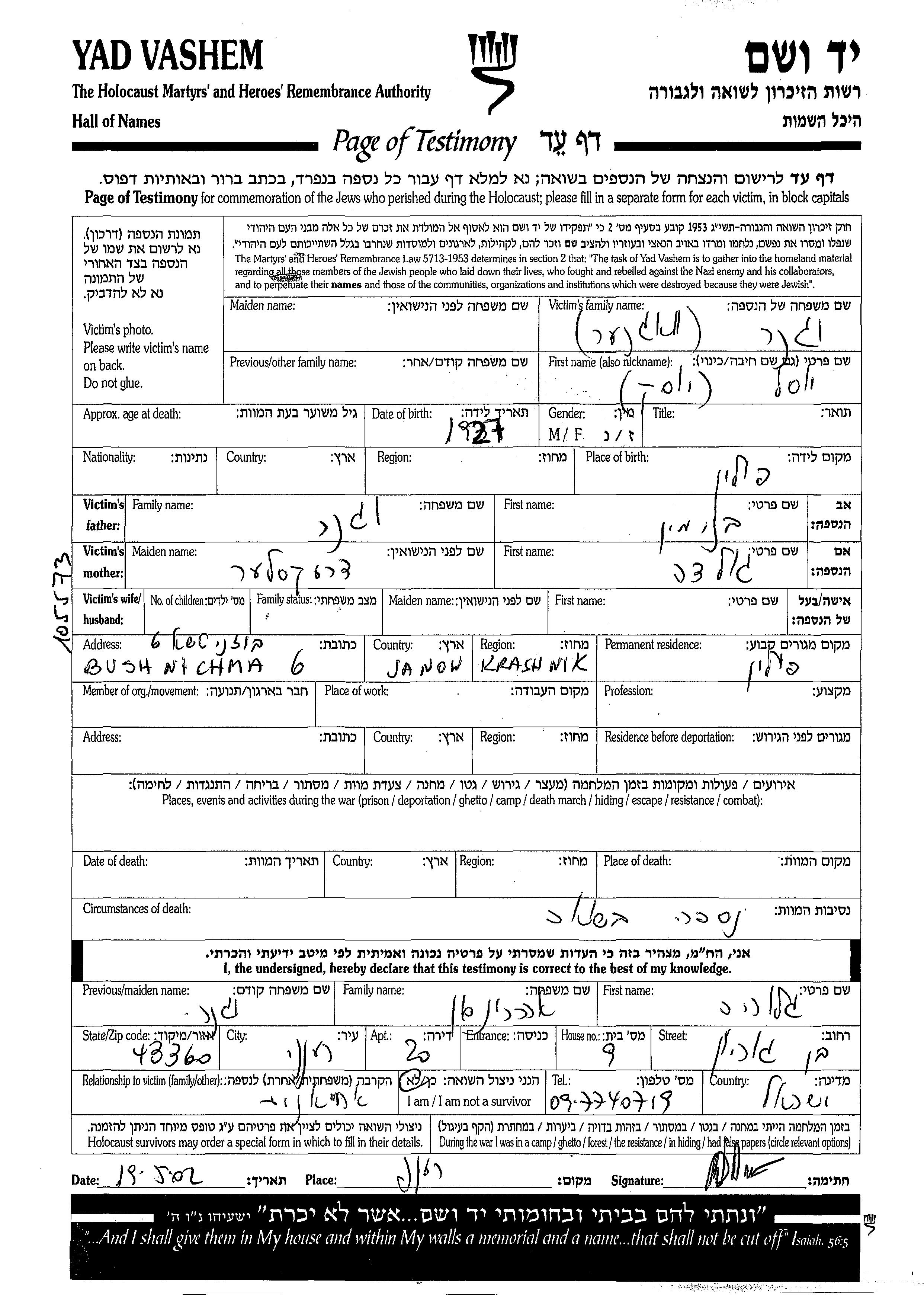 Vagner Yosef 1927 Krashnik, Polen Gedenkblatt