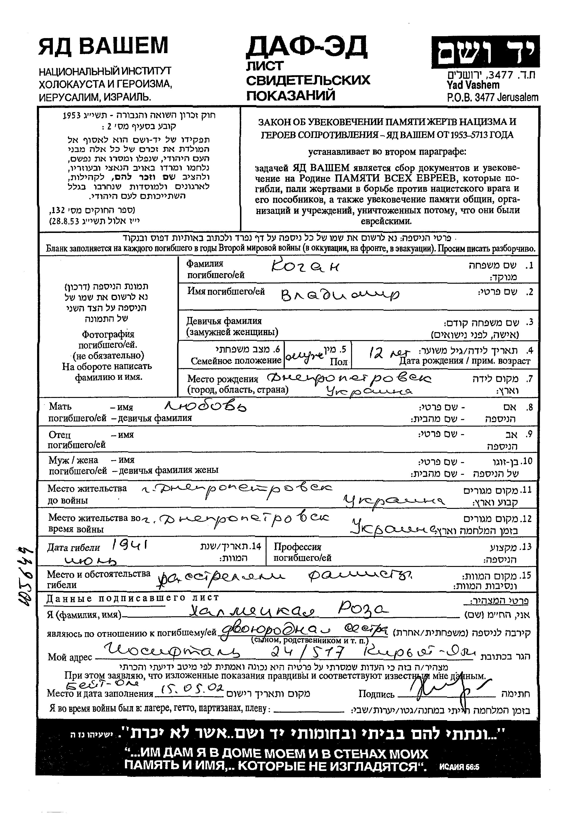 Vladimir wurde in der Schoah ermordet. Todesort: unbekannt im Jahr 1941.