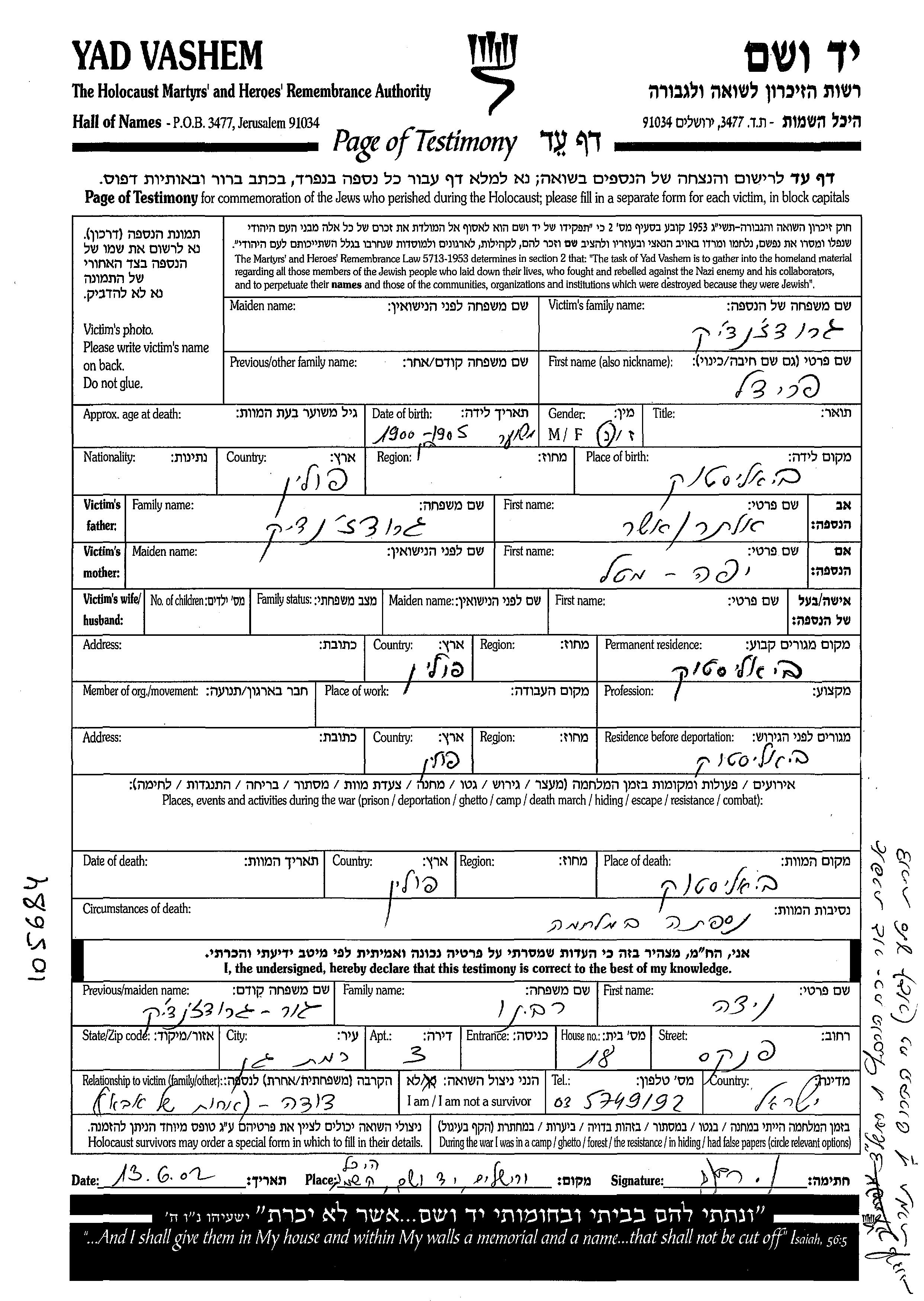 Fridl wurde in der Schoah ermordet. Todesort: Bialystok, Polen.