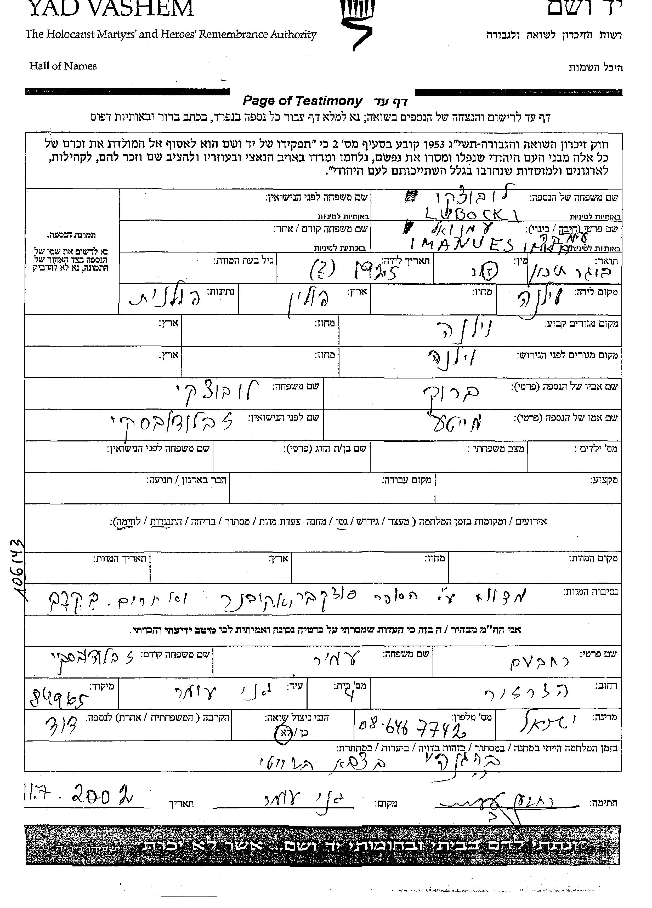 Imanuel Lubocki wurde im Jahr 1925 in Wilna, Polen geboren. Er war der Sohn von Barukh und Meita. Vor dem Zweiten Weltkrieg lebte er in Wilna, Polen. Während des Krieges war er in Wilna, Polen.