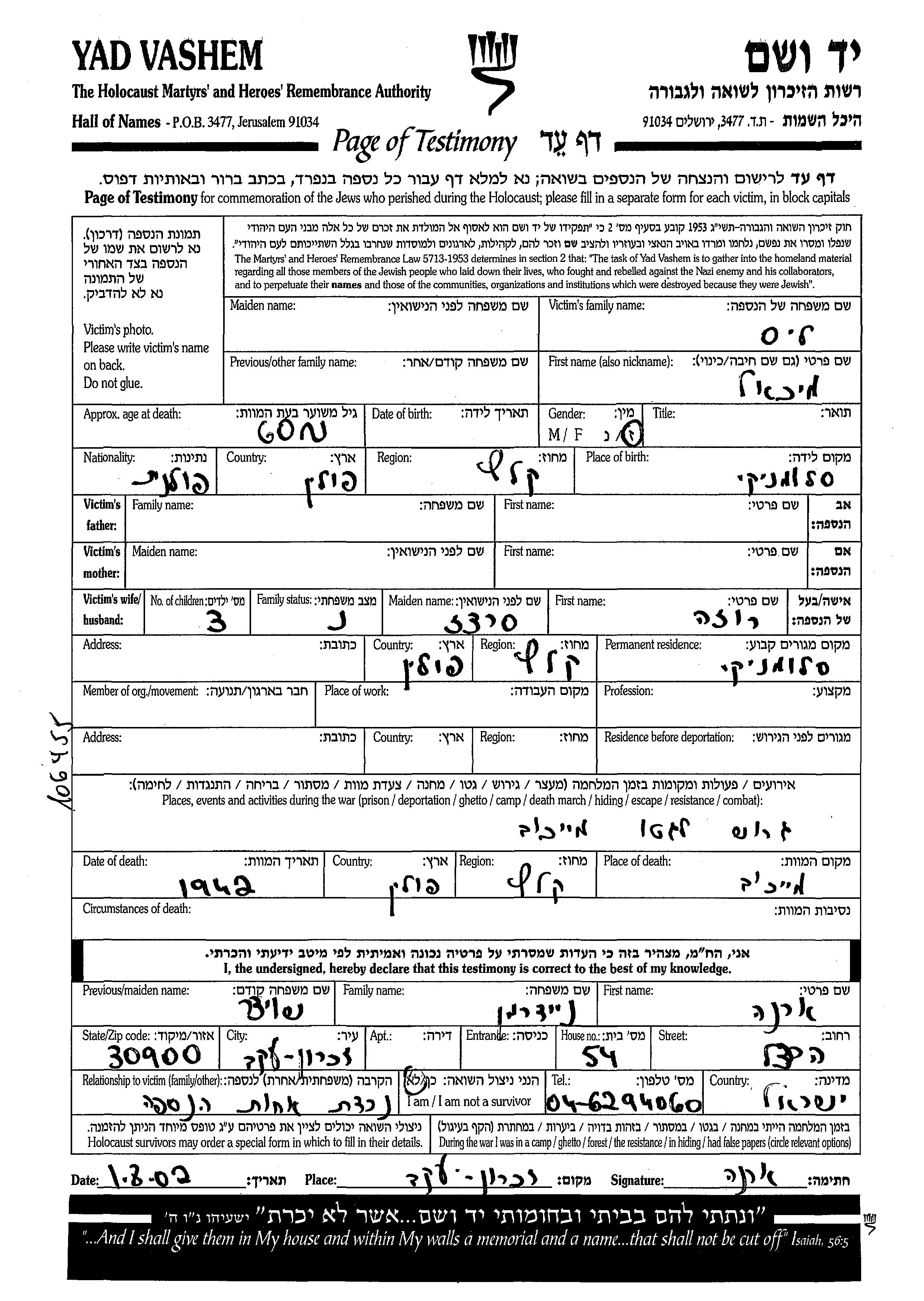 Mikhael Lis wurde in Slomniki, Polen geboren. Er war mit Roza, geb. Sertzash Verheiratet. Vor dem Zweiten Weltkrieg lebte er in Slomniki, Polen.