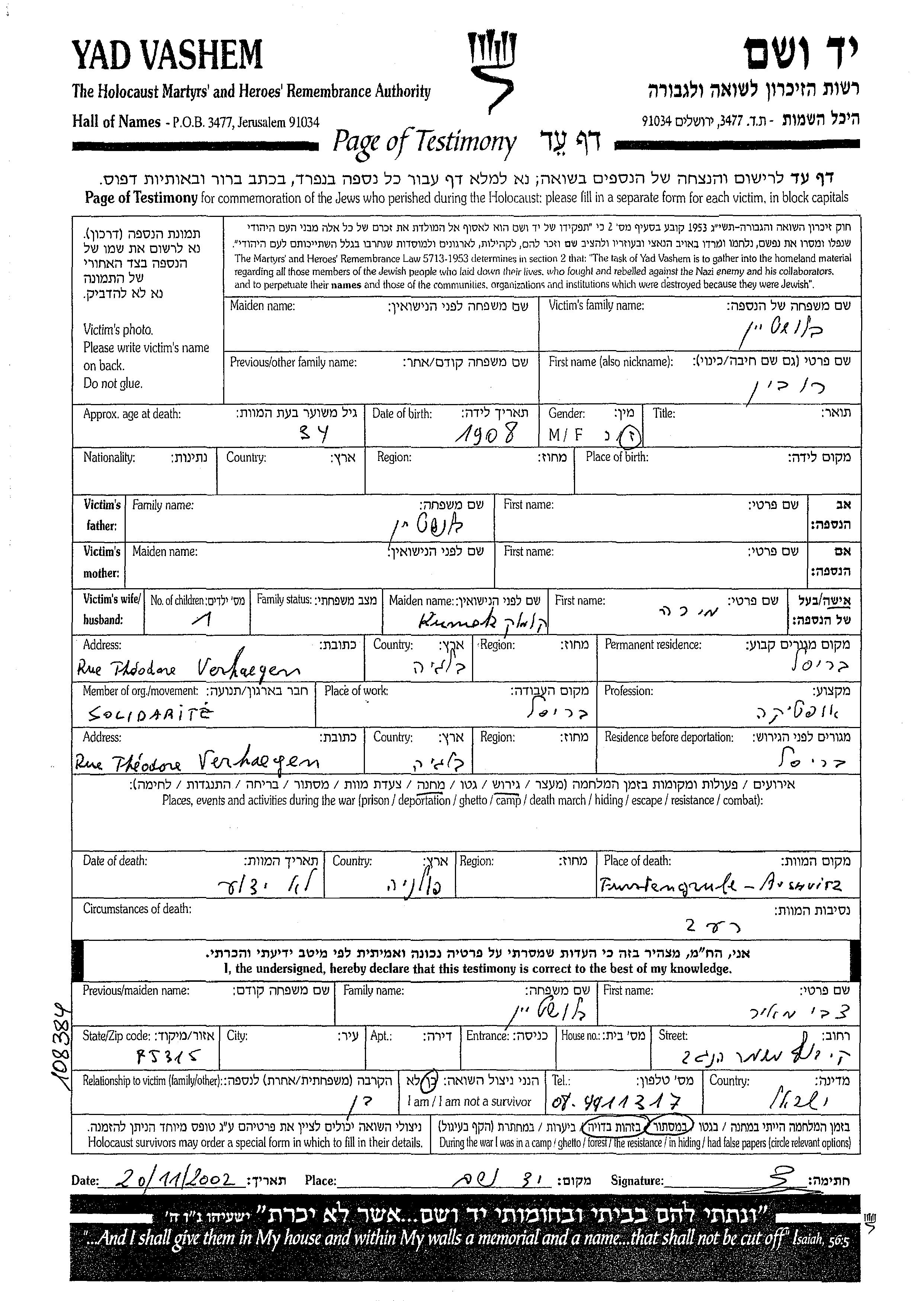 Rubin Blushtein wurde im Jahr 1908 geboren. Er war אופטיקה und mit Mira, geb. Kumok Verheiratet. Vor dem Zweiten Weltkrieg lebte er in Brussels, Belgien. Während des Krieges war er in Brussels, Belgien.