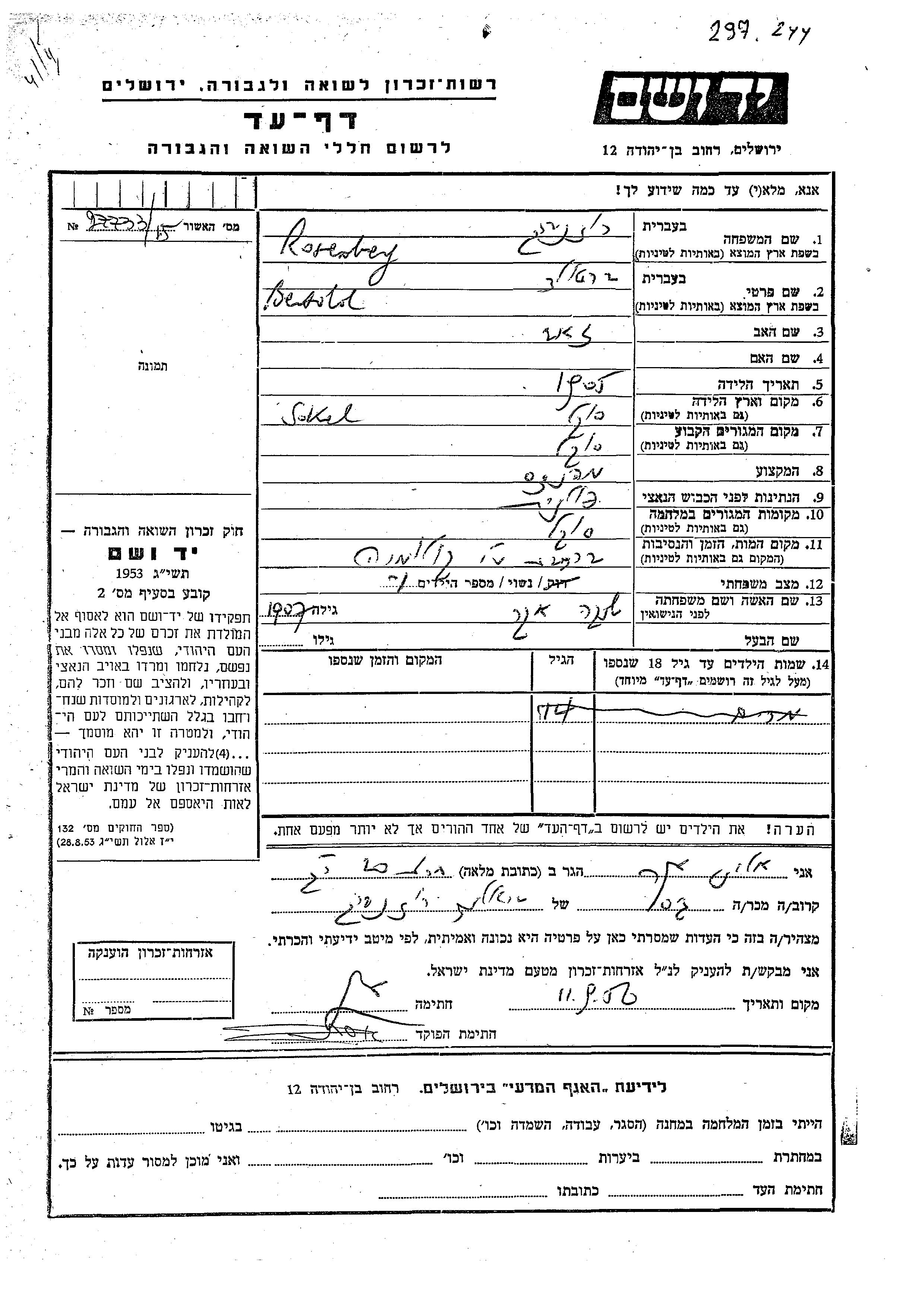 Bertold Rosenberg wurde im Jahr 1905 in Sokal, Polen geboren. Er war der Sohn von Zeev. Er war Ingenieur und mit Shanka, geb. Eger Verheiratet. Vor dem Zweiten Weltkrieg lebte er in Sokal, Polen. Während des Krieges war er in Sokal, Polen.