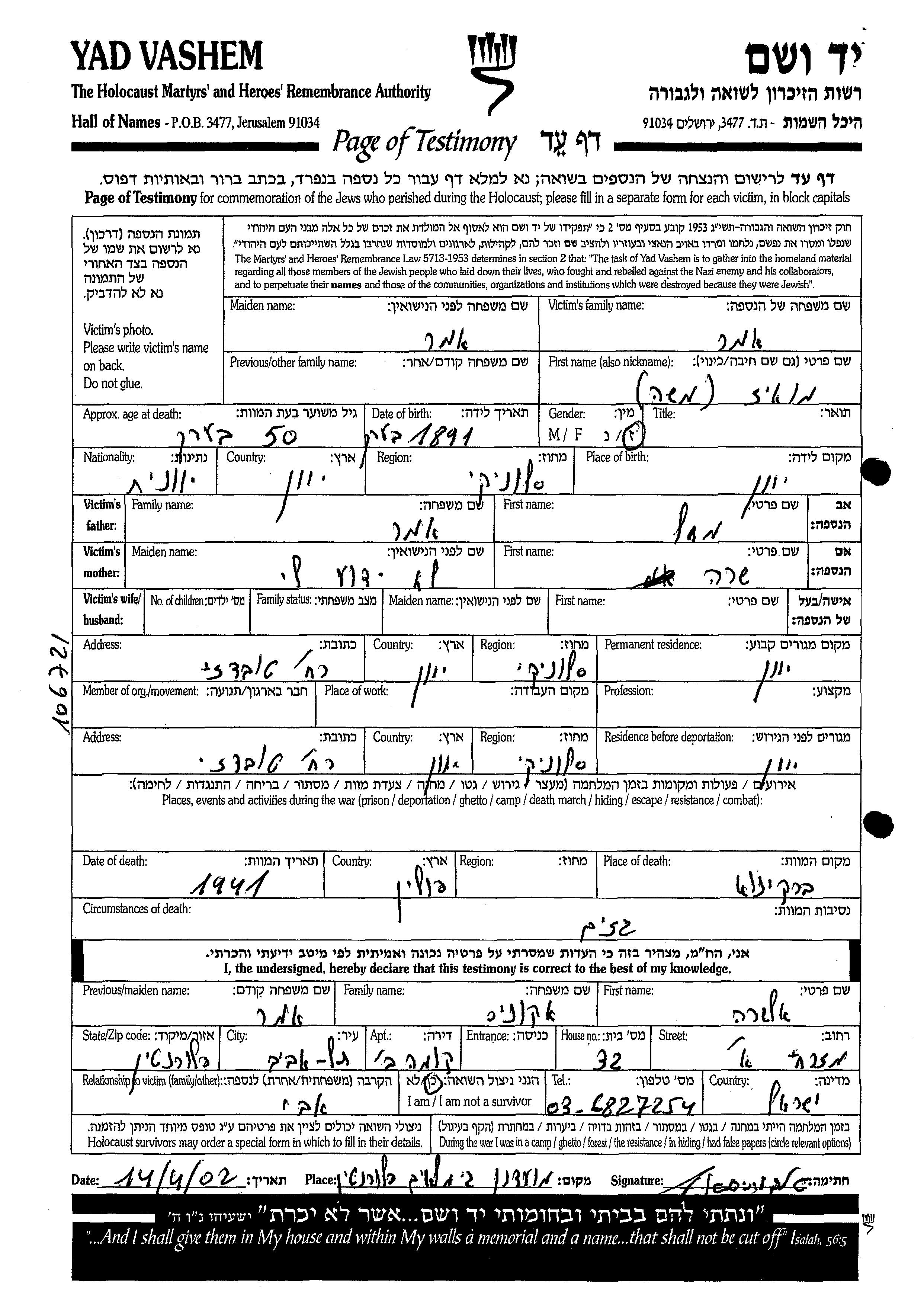 Moise wurde in der Schoah ermordet. Todesort: Birkenau, Polen im Jahr 1941.