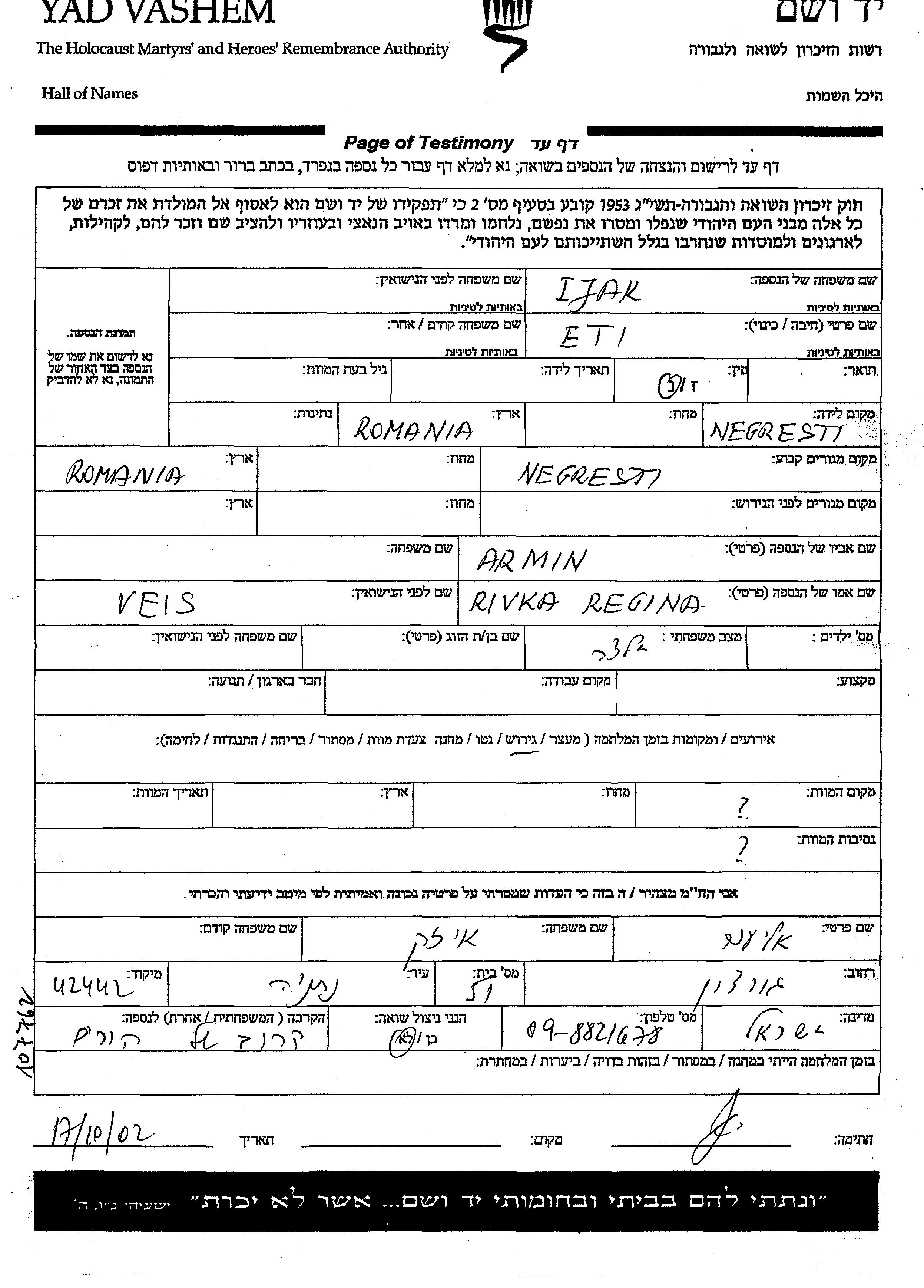 Ijak Eti Negresti, Rumänien Gedenkblatt