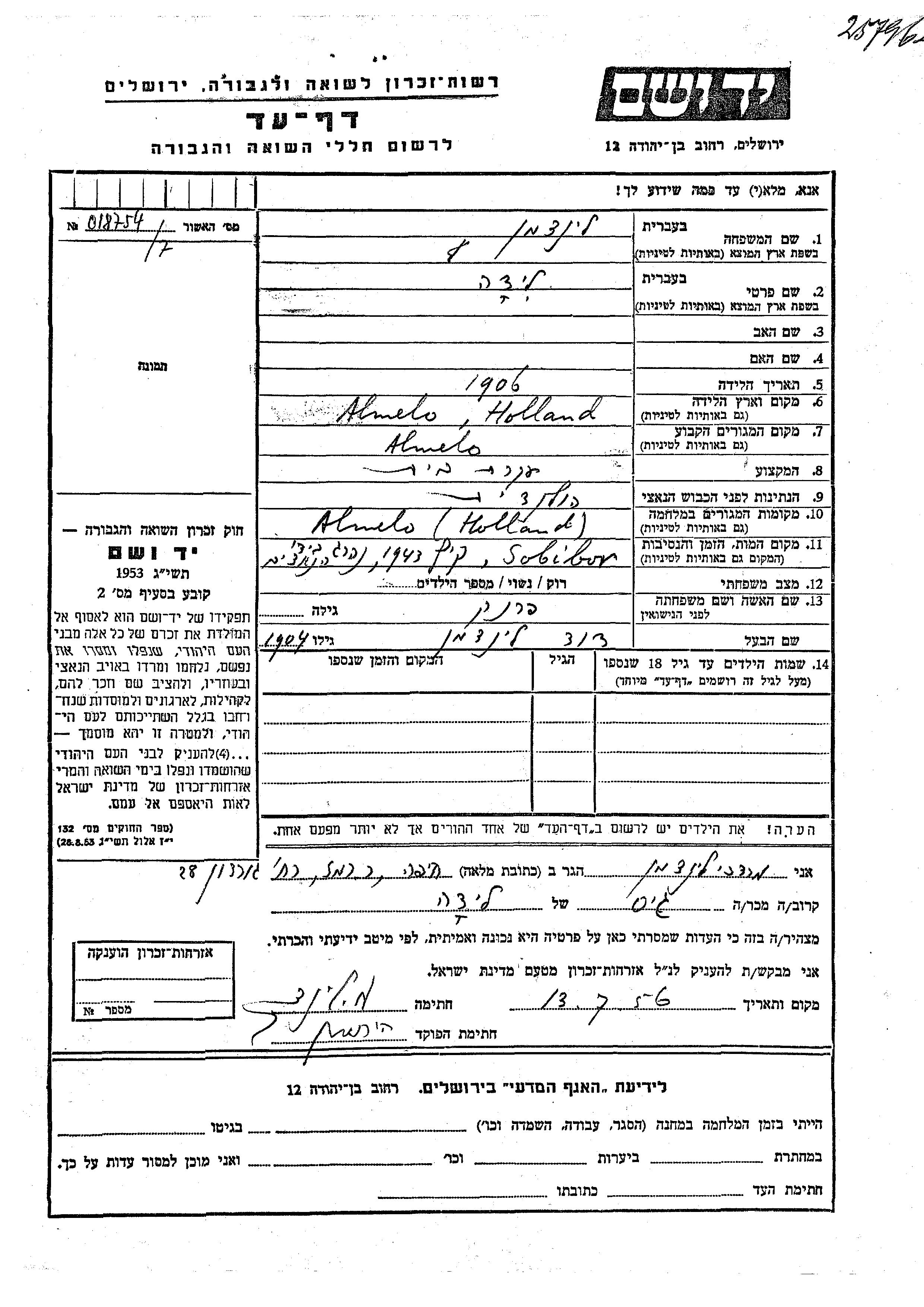 Lidia wurde in der Schoah ermordet. Todesort: Sobibor, Polen im Jahr 1943.